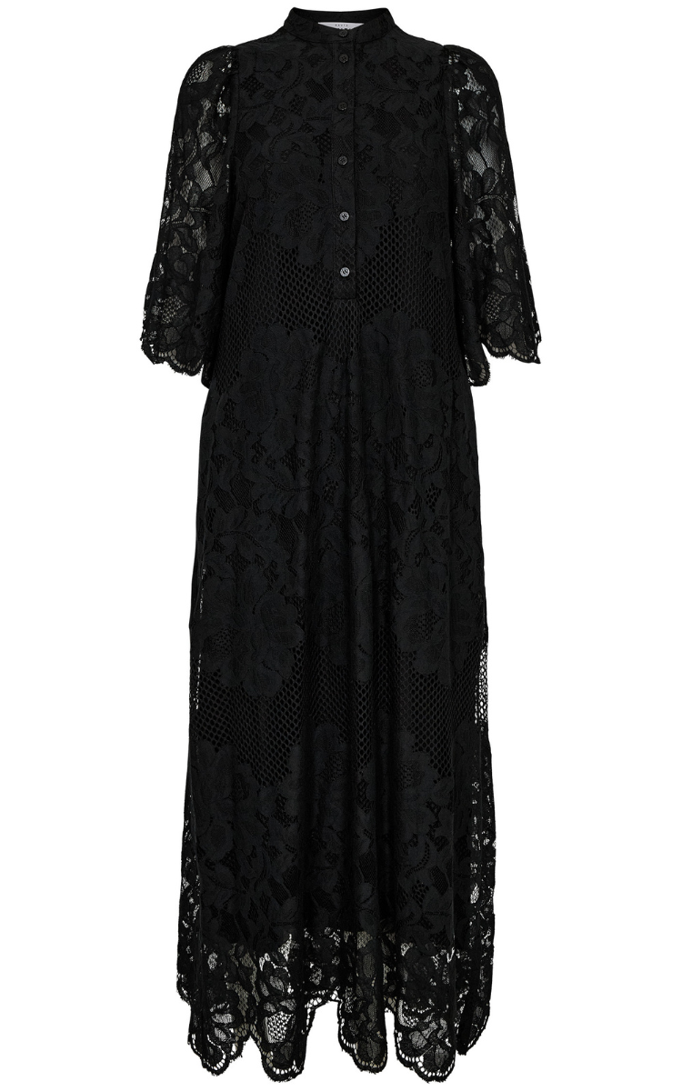 Haute L'Amitié Curvey Lace Hem Placket Kjole Black