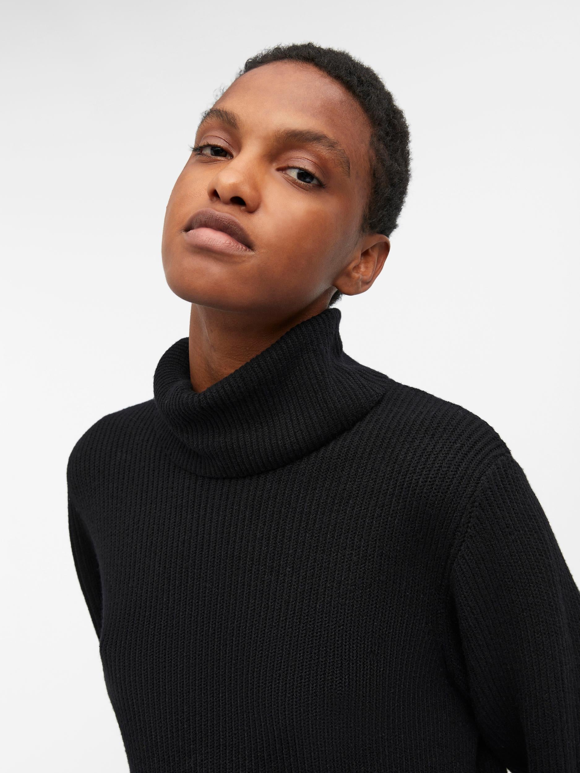 Lækker strikkjole fra Object i en blød kvalitet, der ikke kradser. Strikkjolen har lige snit, rullekrave samt lange ærmer. Den er skøn at style med strømpebukser og støvler eller over smalle jeans.
