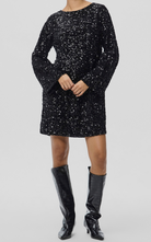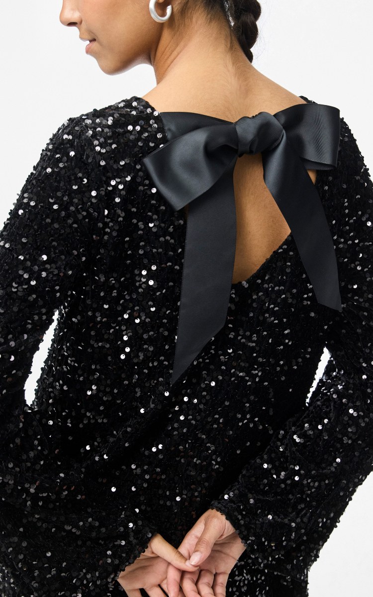 Kam LS Deep Back Bow Kjole Black Sequins fra Pieces