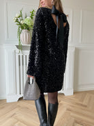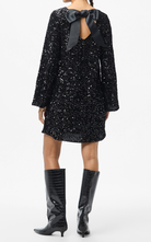 Pieces Kam LS Deep Back Bow Kjole Black Sequins NOA25