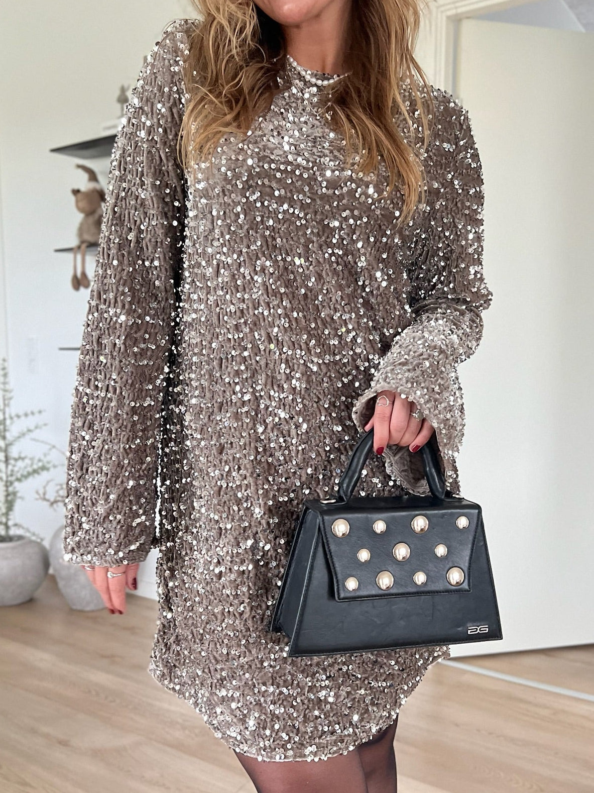 Kam LS Deep Back Bow Kjole Morel Sequins fra Pieces