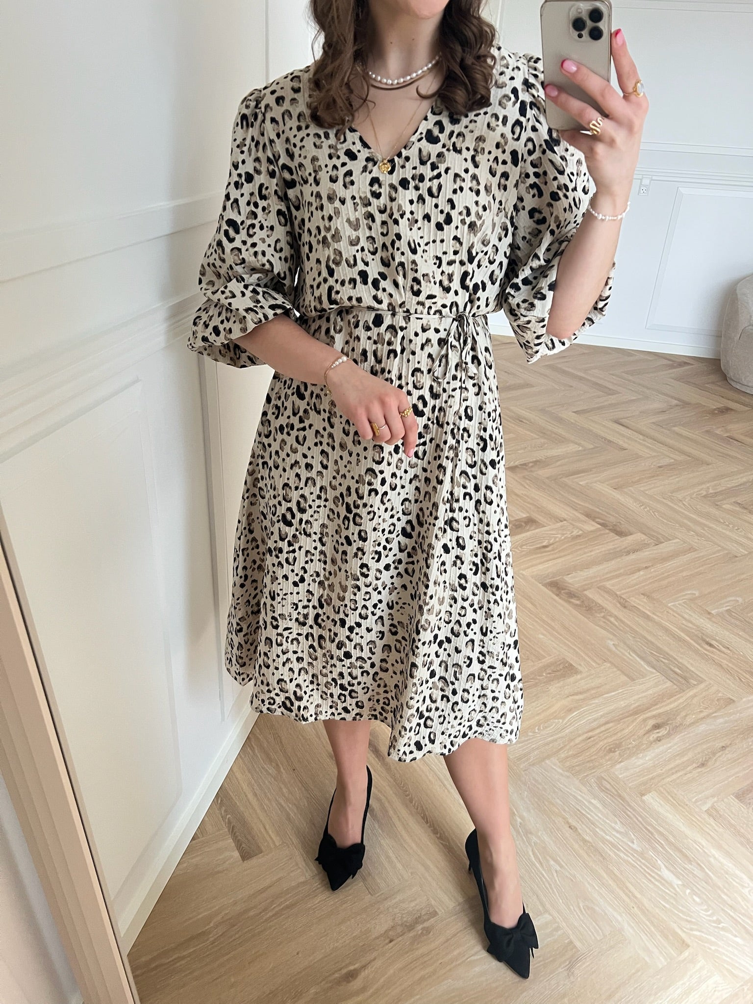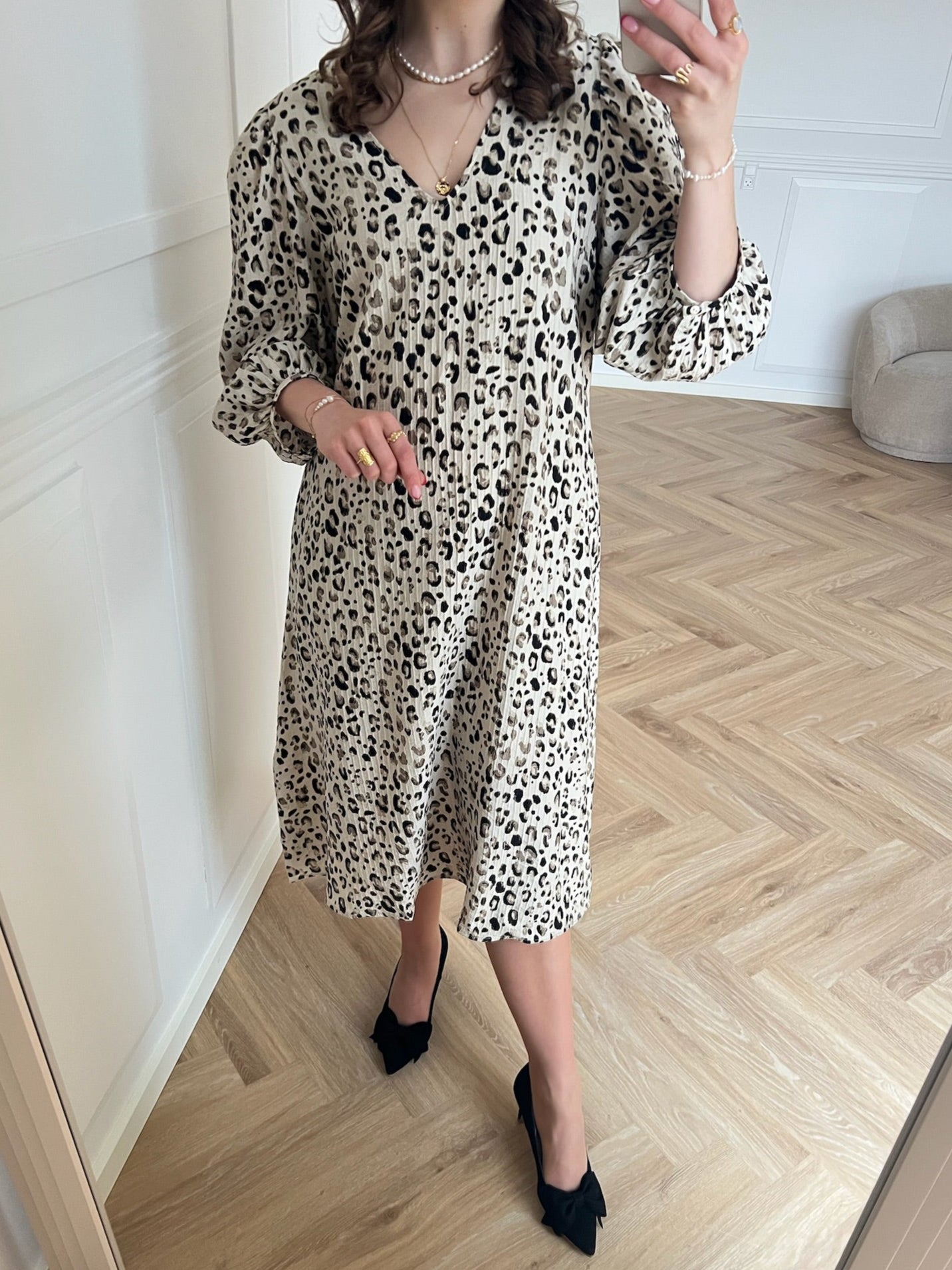 Alyona Vlora 3/4 Kjole Oatmeal Leo fra MSCH Copenhagen