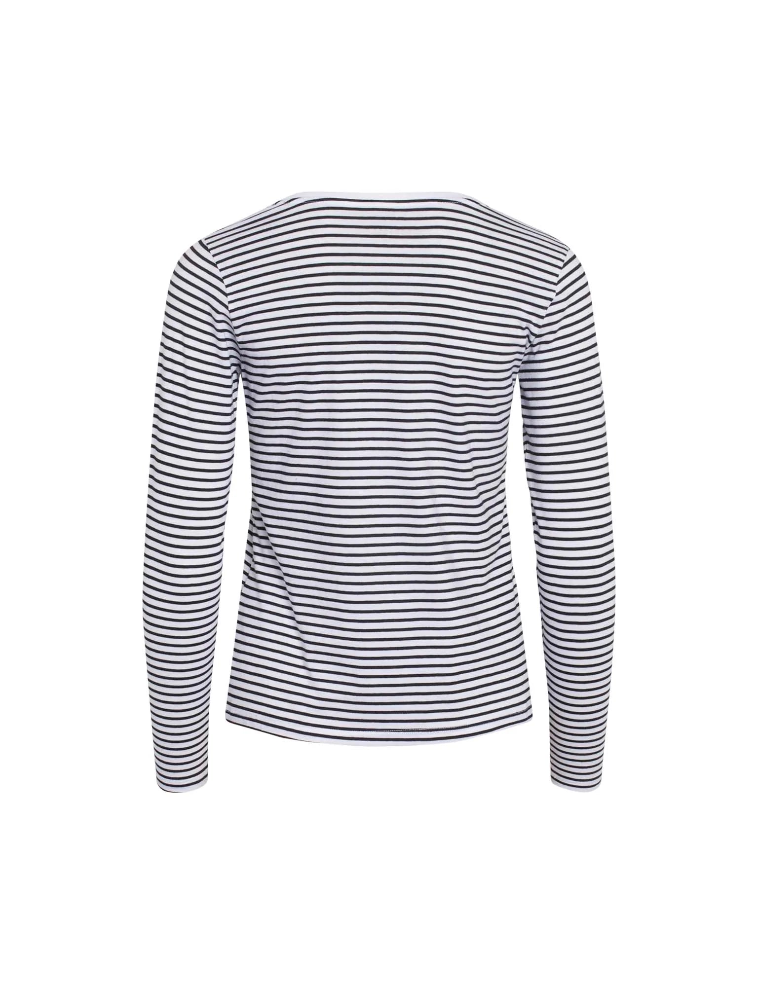 Tenna er en klassisk T-shirt fra Mads Nørggard i økologisk bomuld. Den har regulær pasform, rund hals og lange ærmer. Den sort-hvide kombination passer til det meste og derfor er denne T-shirt perfekt som en del af basisgarderoben.