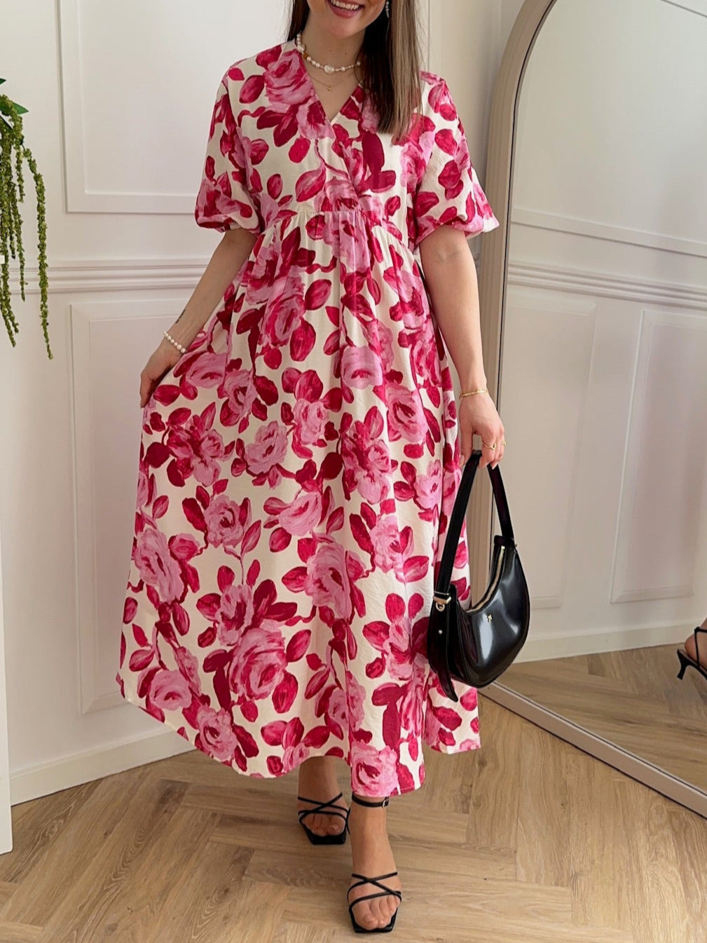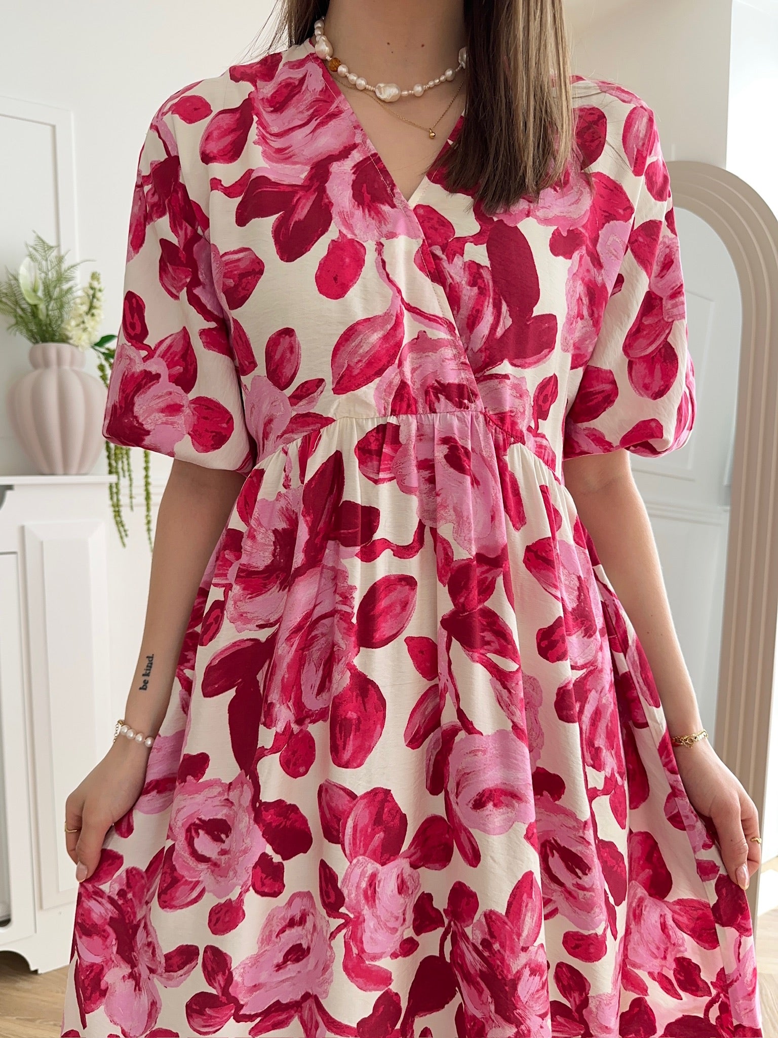 Edrina 2/4 Kjole Red Rose Flower fra MSCH Copenhagen