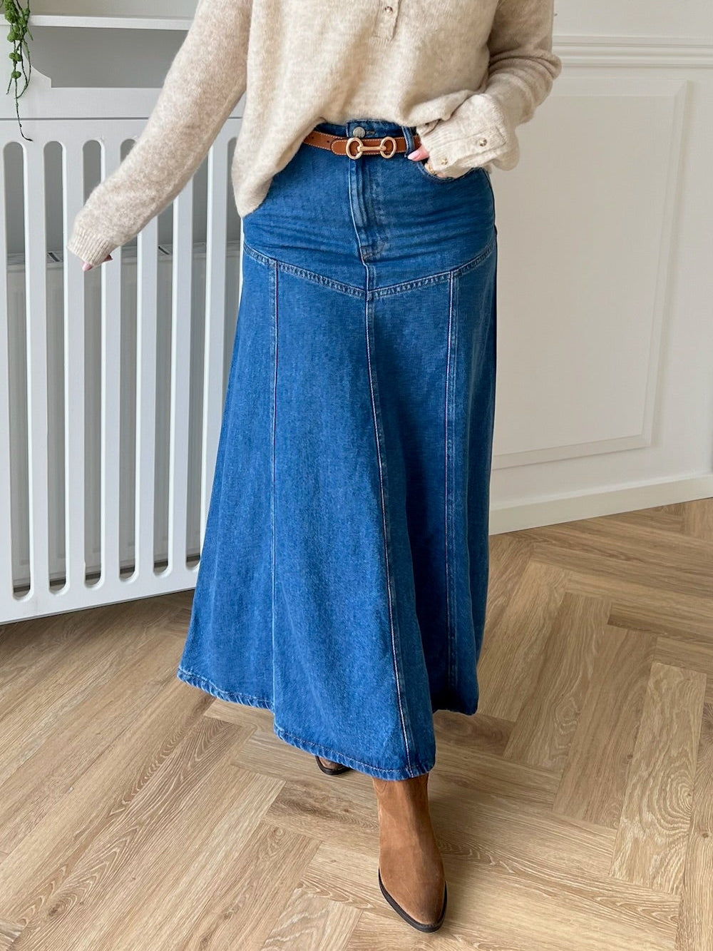 - Lang denimnederdel