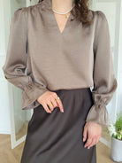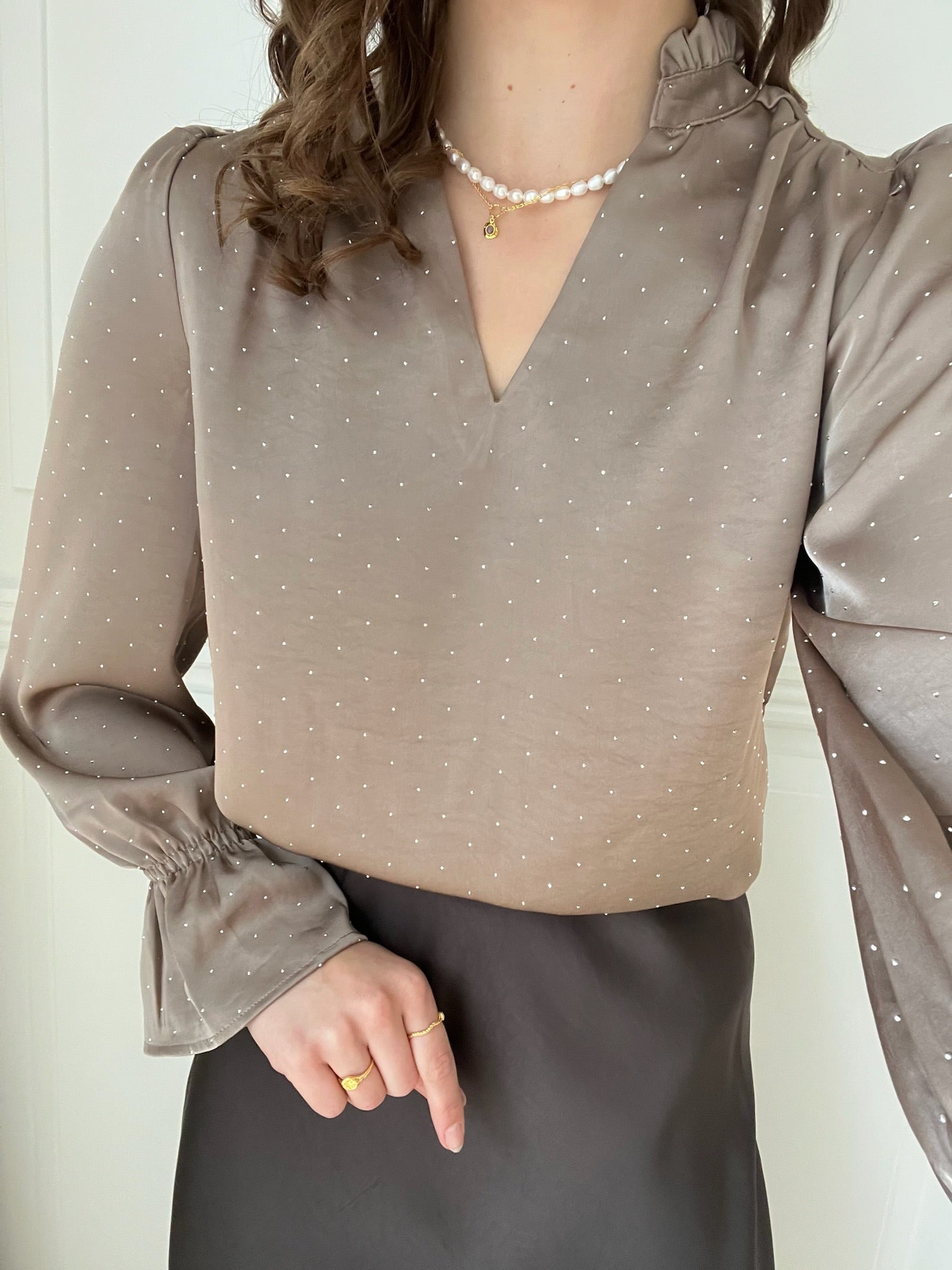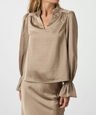 Amara Heavy Sateen Bedaz Bluse Dark Taupe fra Neo Noir