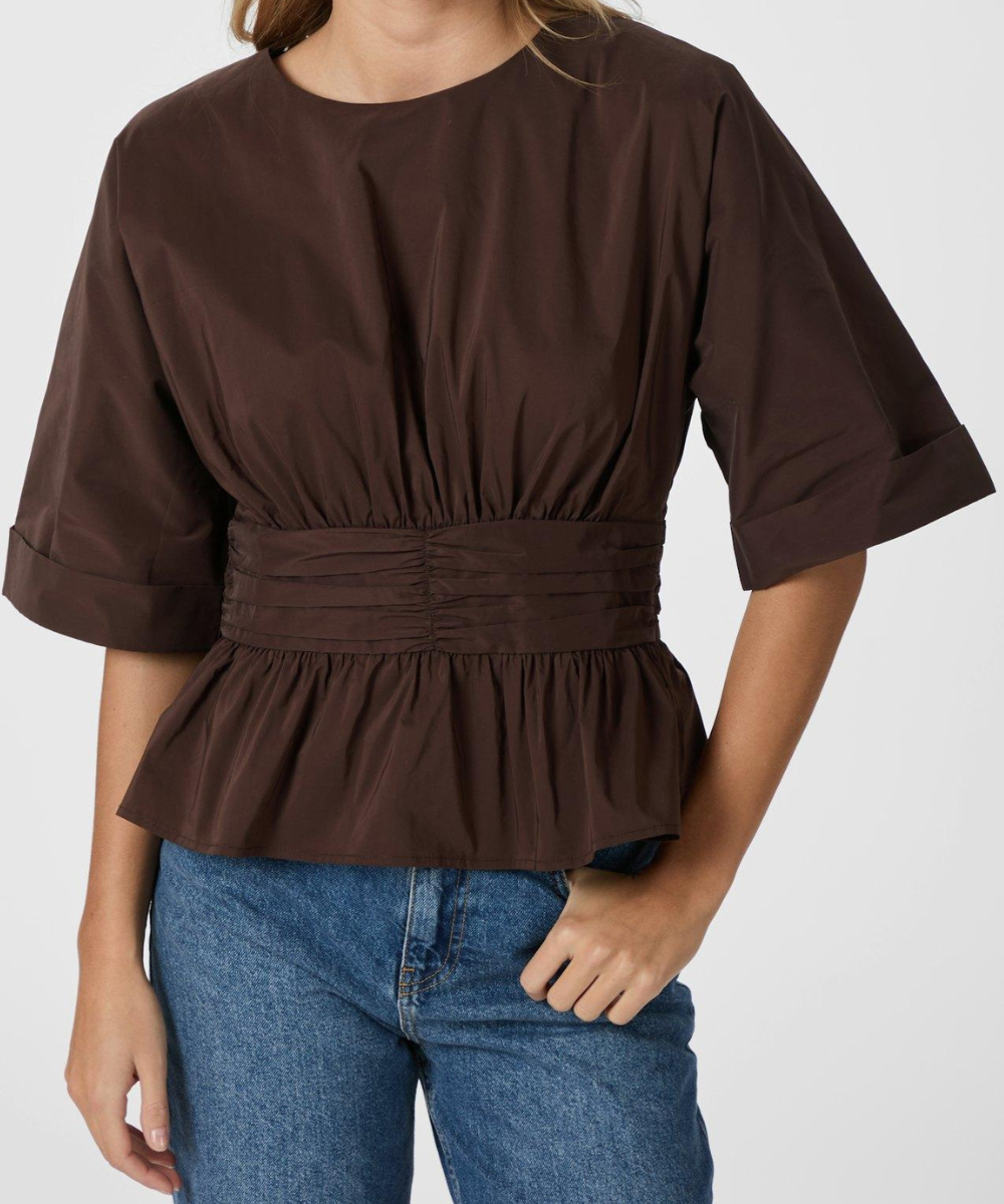 Annegret Poplin Bluse Chocolate Brown fra Neo Noir