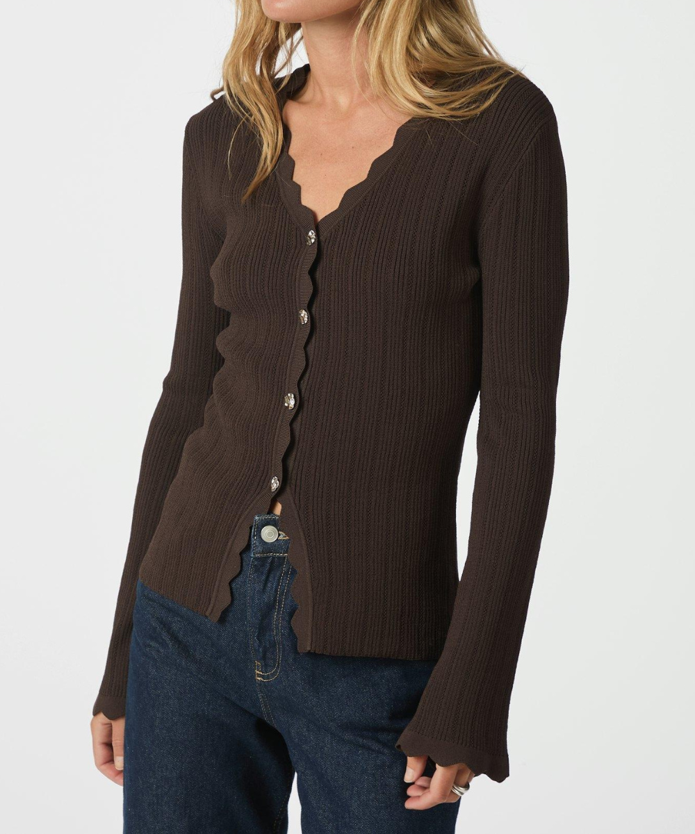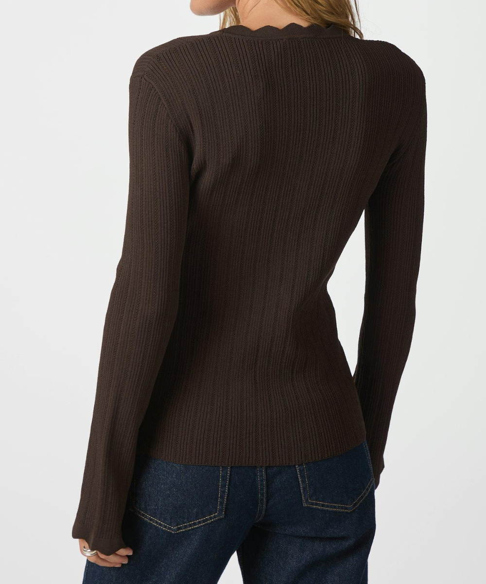 Neo Noir Clara Stitch Knit Bluse Dark Brown