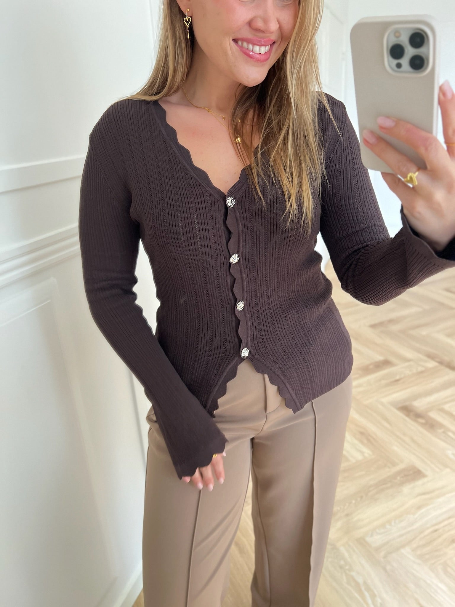 Clara Stitch Knit Bluse Dark Brown fra Neo Noir