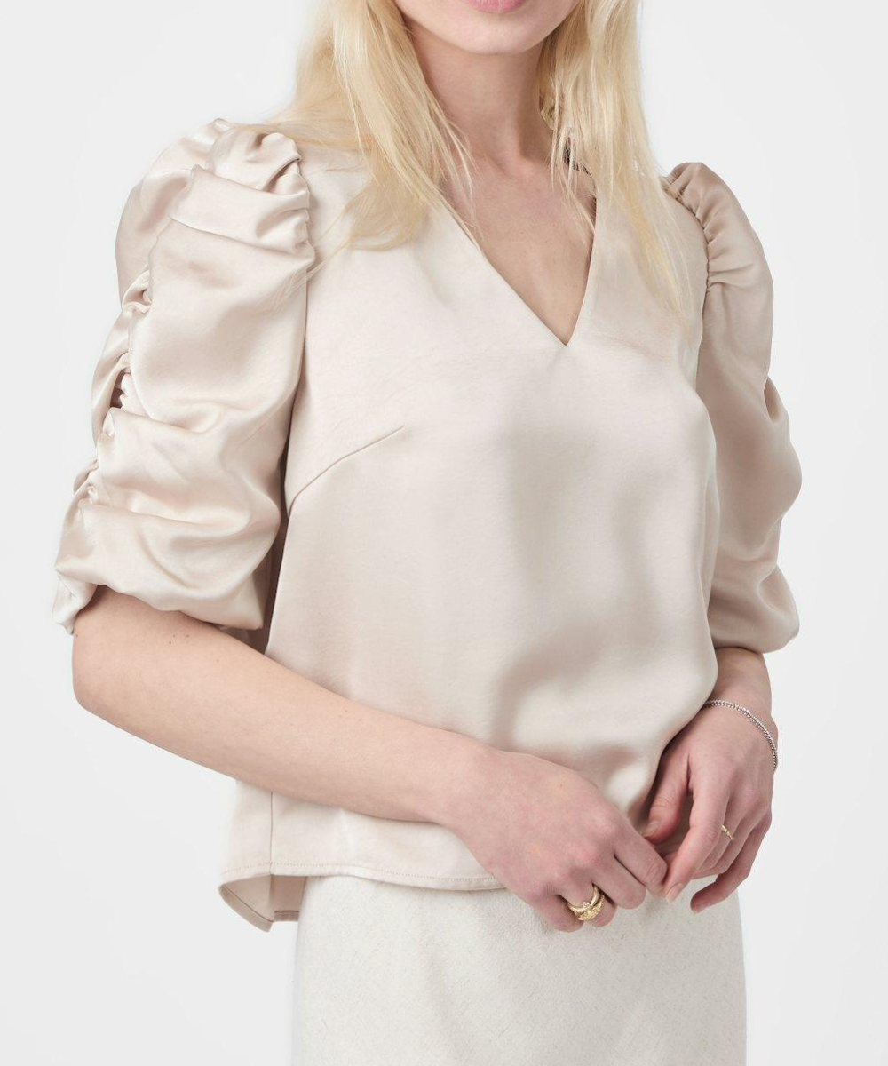 Elba Heavy Sateen Bluse Champagne fra Neo Noir
