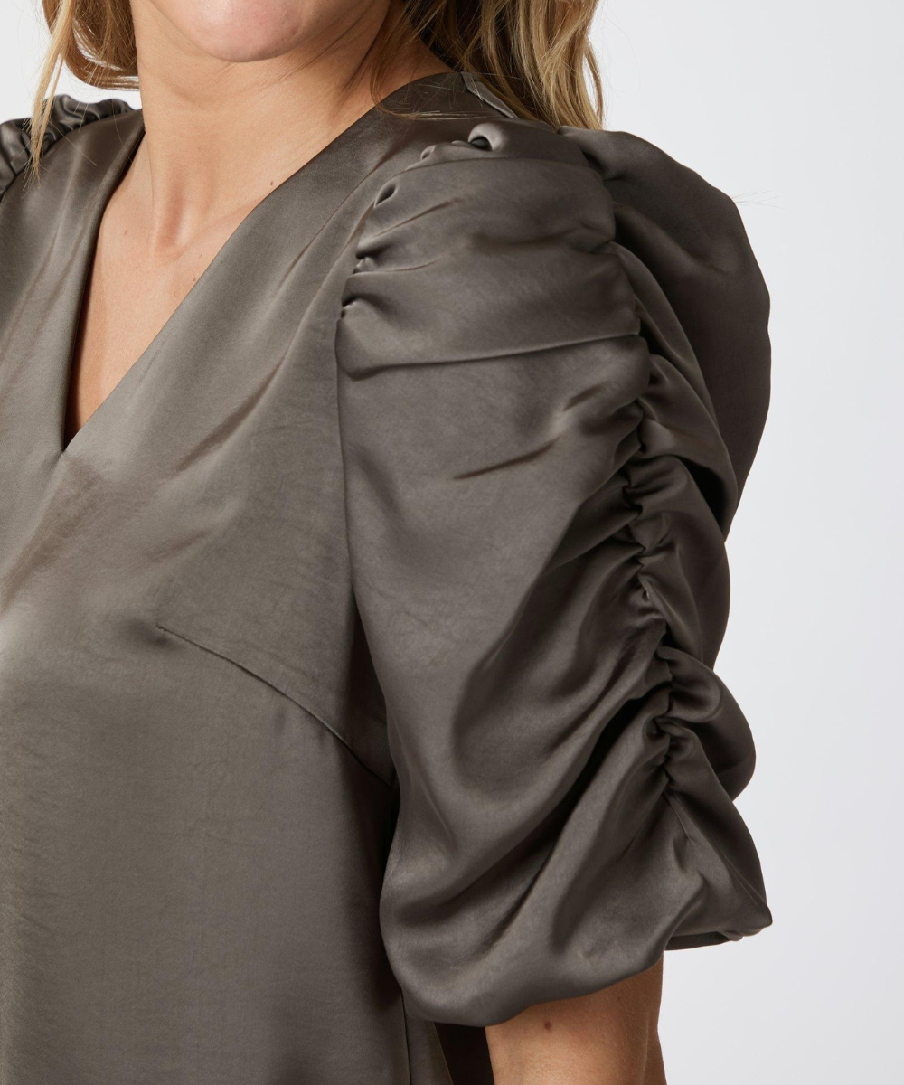 Elba Heavy Sateen Bluse Warm Grey fra Neo Noir