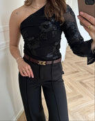 Friana Big Flower Mesh Bluse Black fra Neo Noir