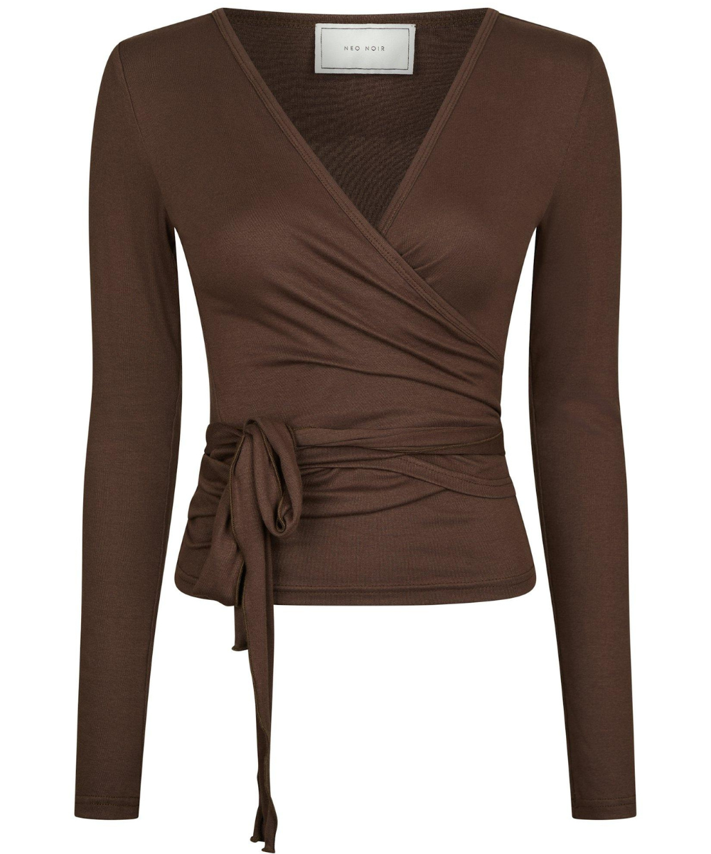 Nia Jersey Wrap Bluse Chocolate Brown fra Neo Noir