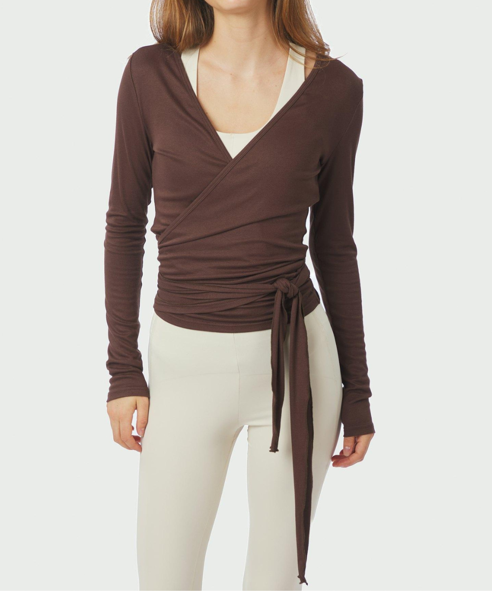Neo Noir Nia Jersey Wrap Bluse Chocolate Brown