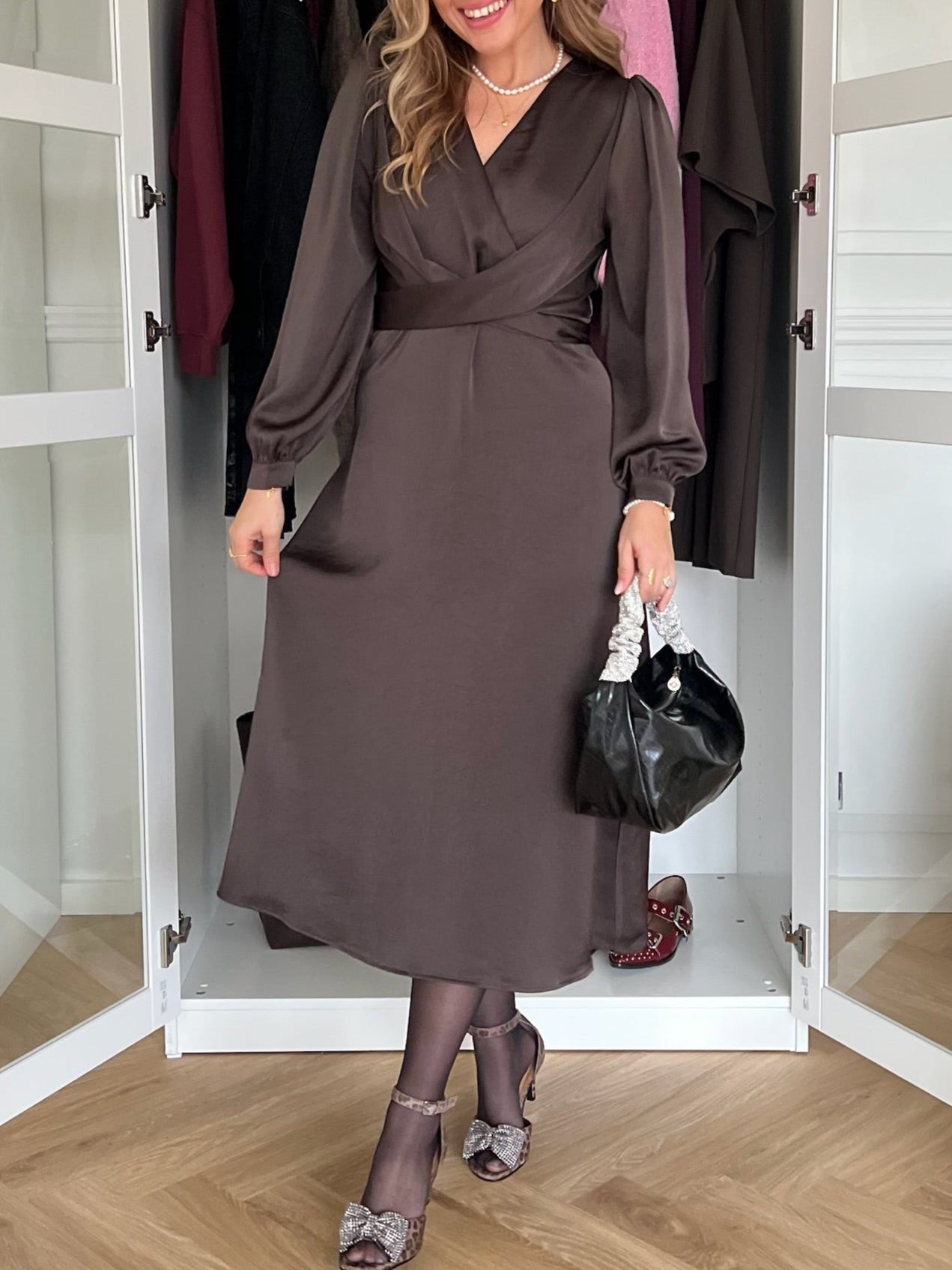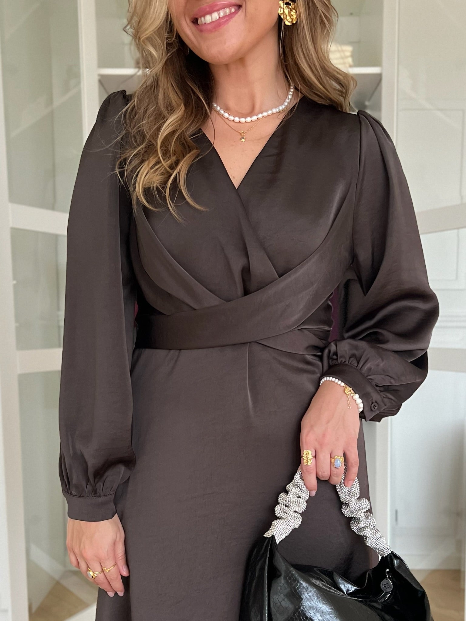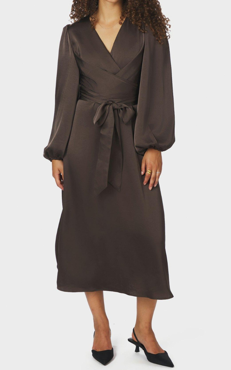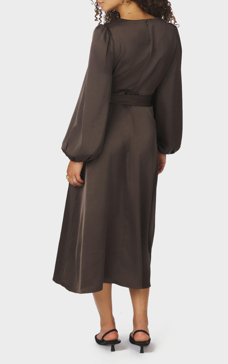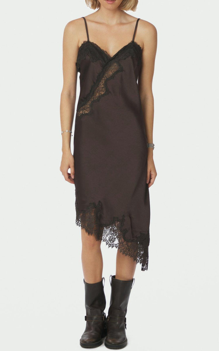 Neo Noir Rimini Heavy Sateen Kjole Dark Brown (Forudbestilling lev. start december)