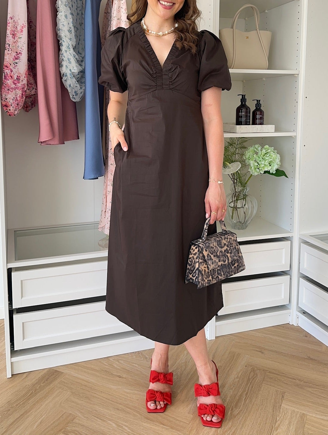 Neo Noir Illana Poplin Kjole Chocolate Brown