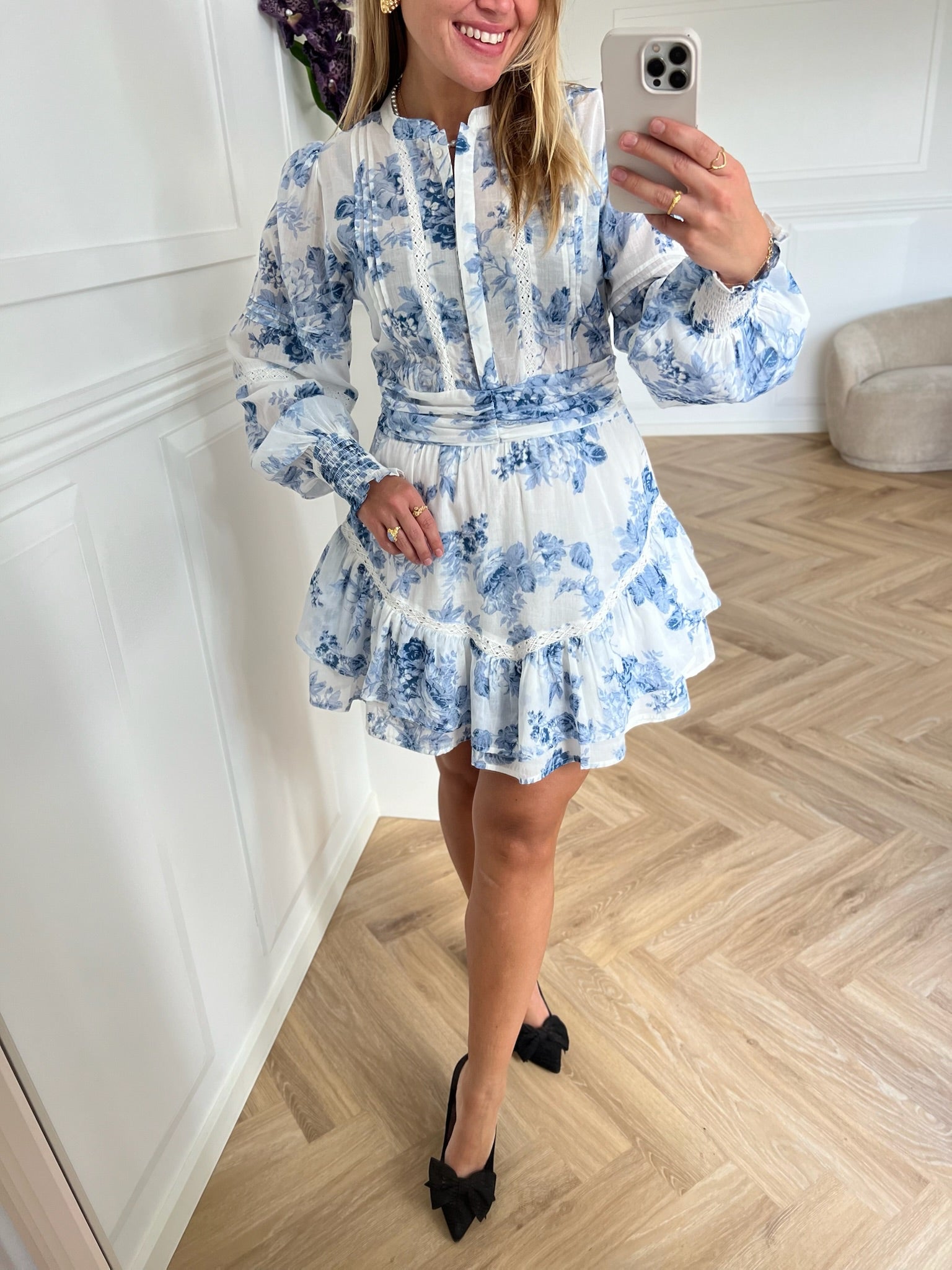 Roberta Flower Flow Kjole Light Blue fra Neo Noir