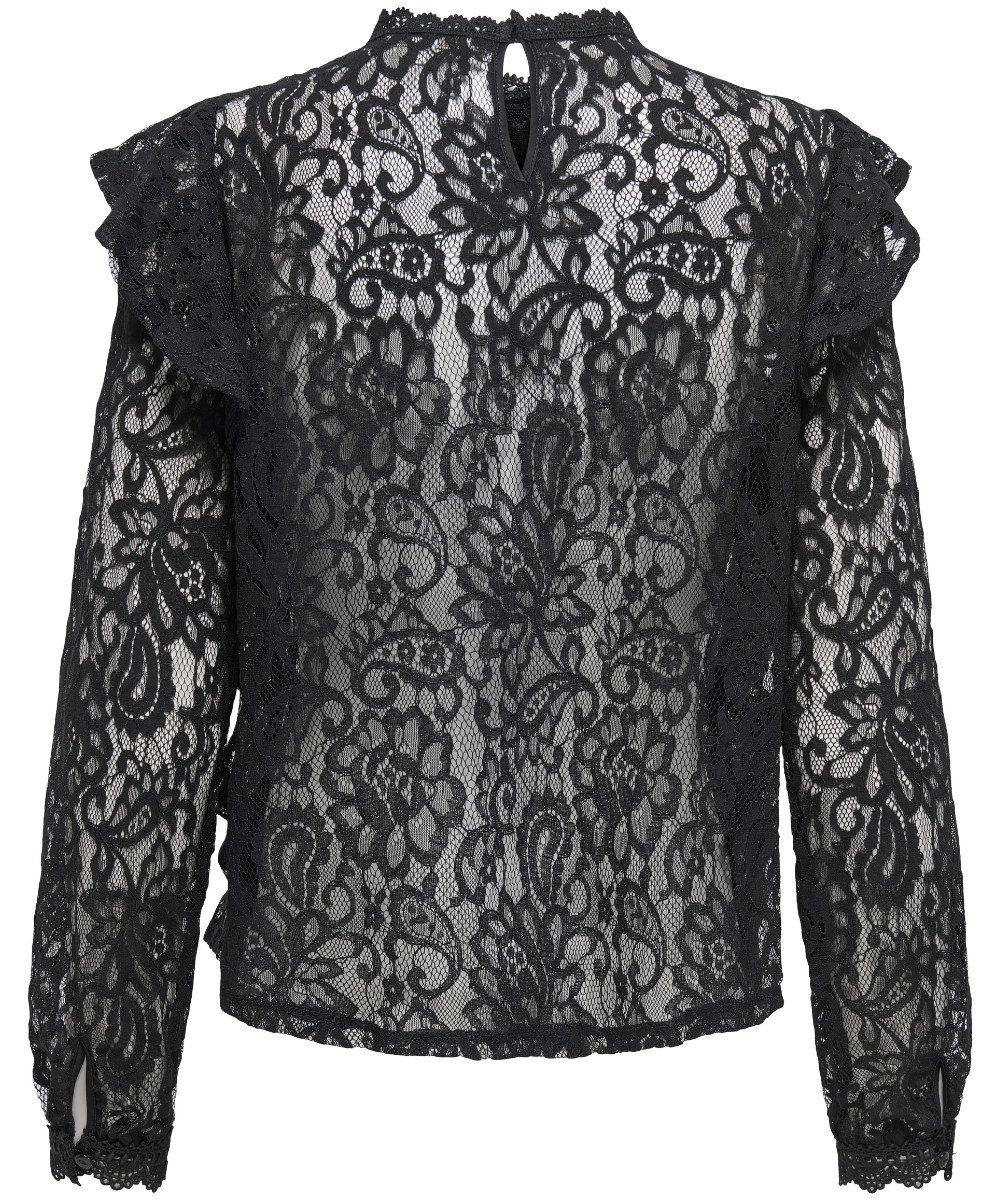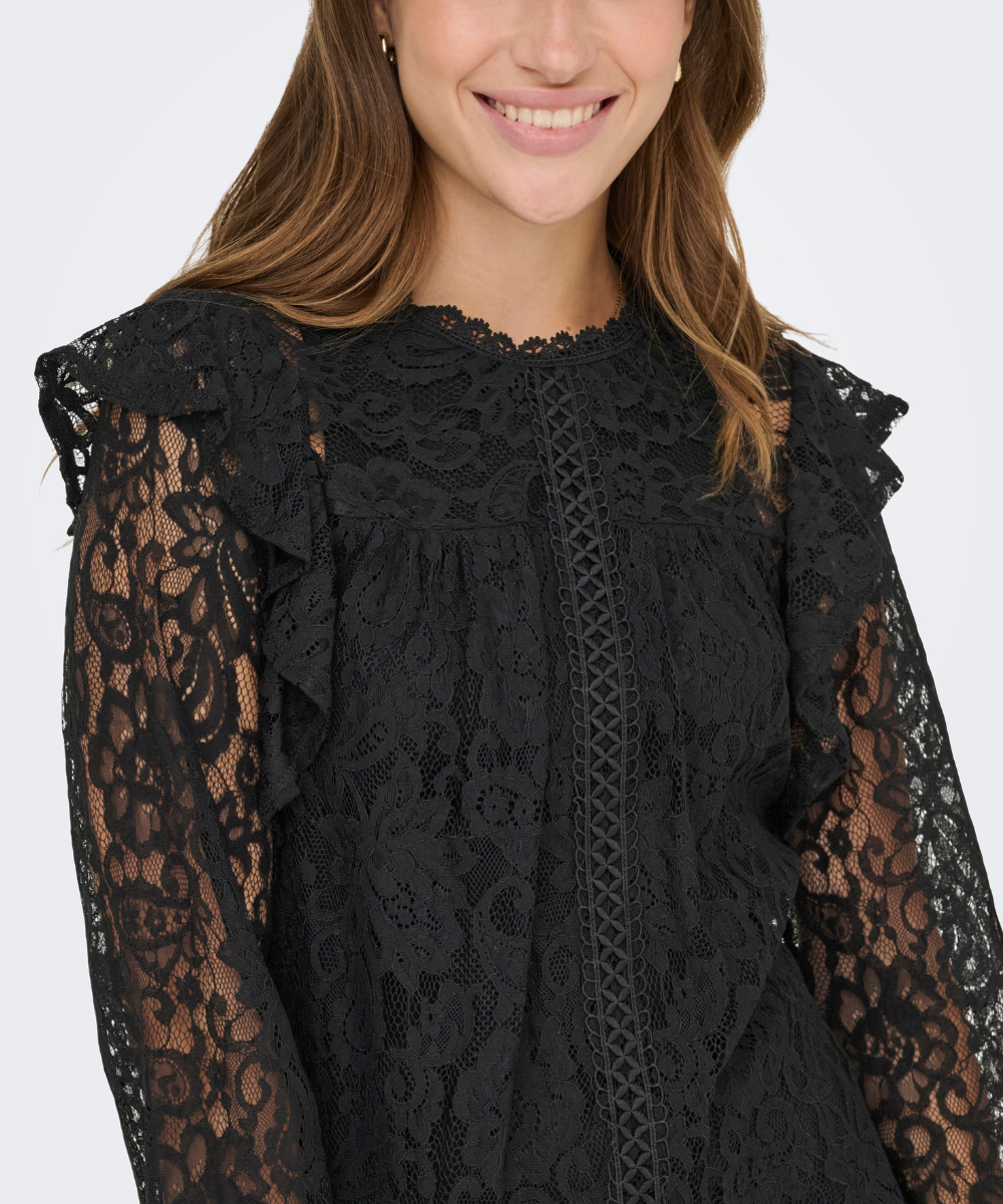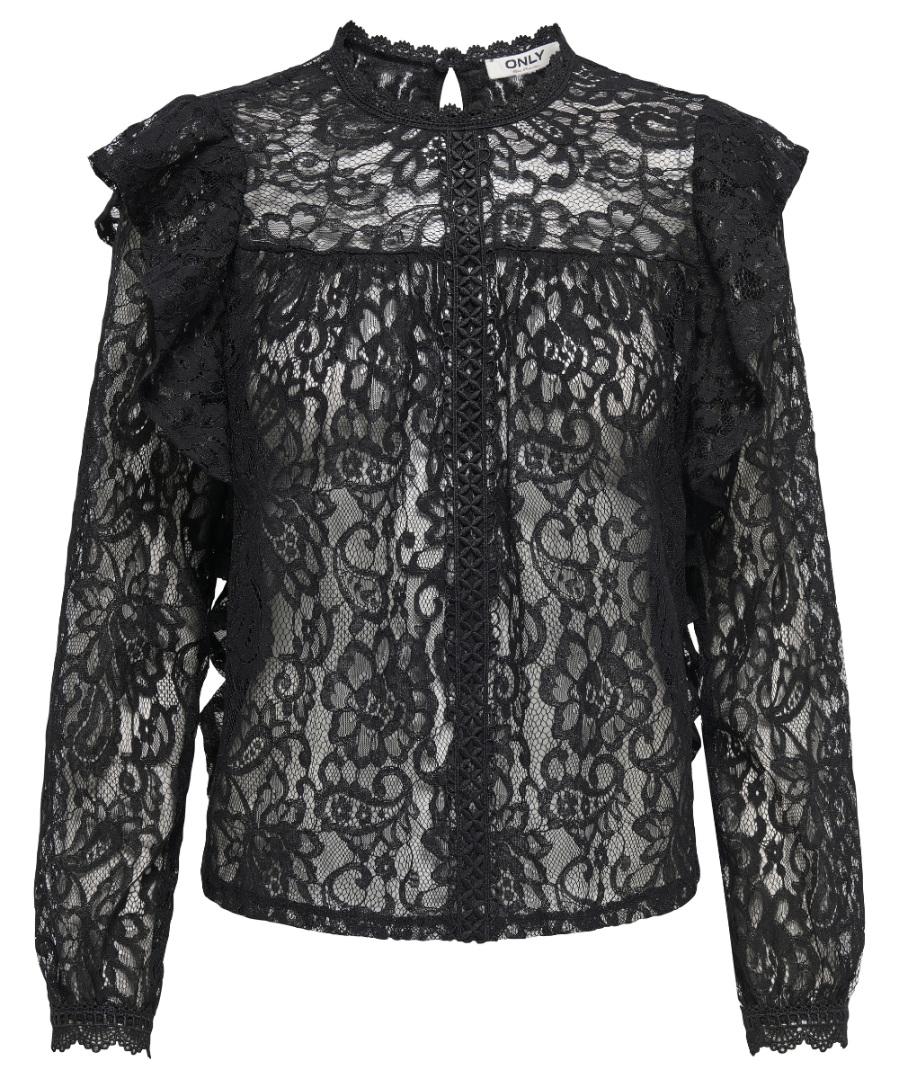 Only Isolde LS Frill O-Neck Strik Birch/Black