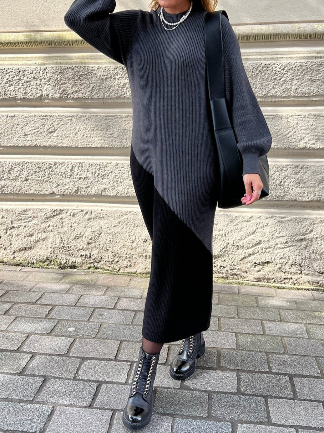 Object Ditte LS Knit Midi Kjole Dark Grey Melange