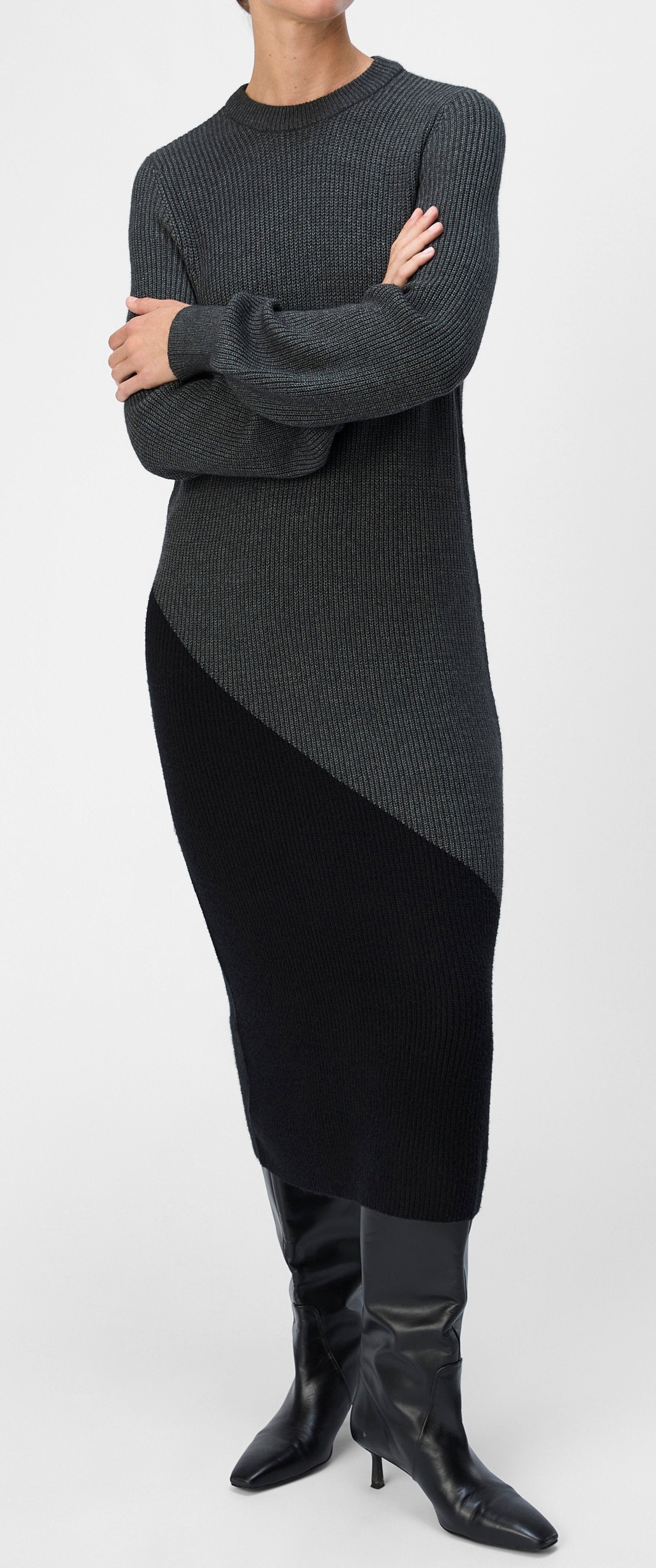 Ditte LS Knit Midi Kjole Dark Grey Melange fra Object