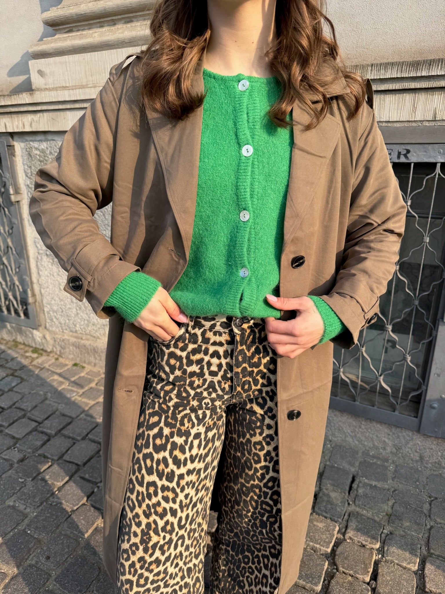 Black Colour Bella Knit Cardigan Green