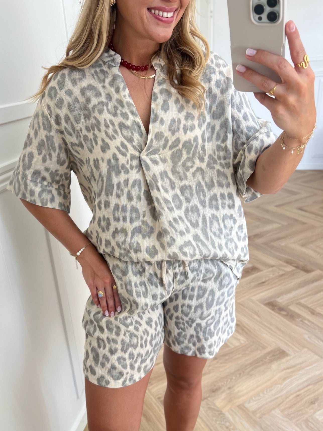 Melina SS Linen Bluse Natural Leo fra Black Colour
