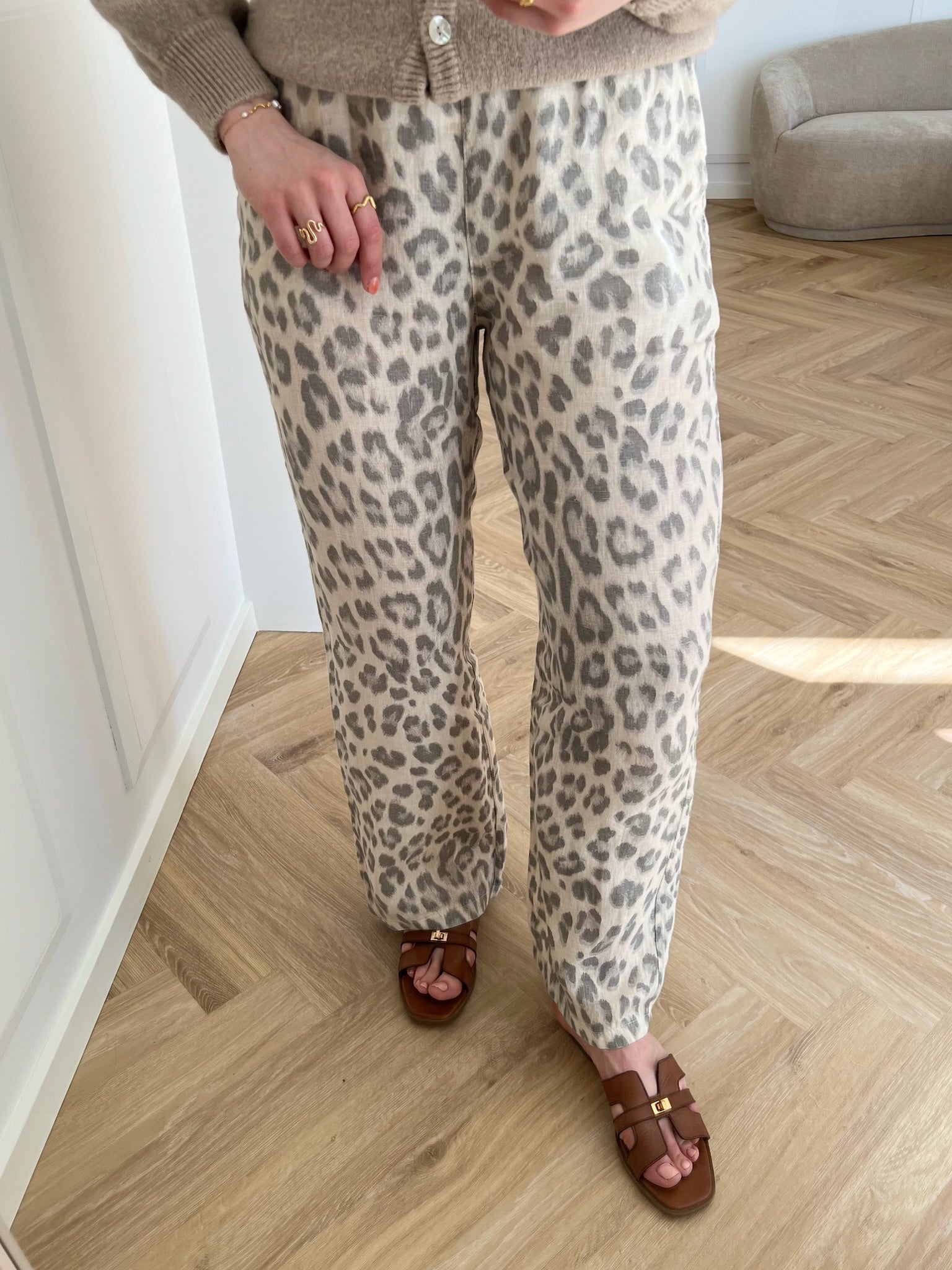 Melina Wide Linen Bukser Natural Leo fra Black Colour