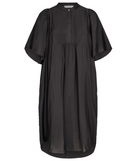 Superskøn kjole fra Co'Couture i sort. Kjolen har løs pasform med god volumen. De korte, løse ærmer har en rynkedetalje ved skuldrene, som giver en flot effekt. Fortil har kjolen skjulte knapper og under brystet er der ligeledes en rynkeeffekt.