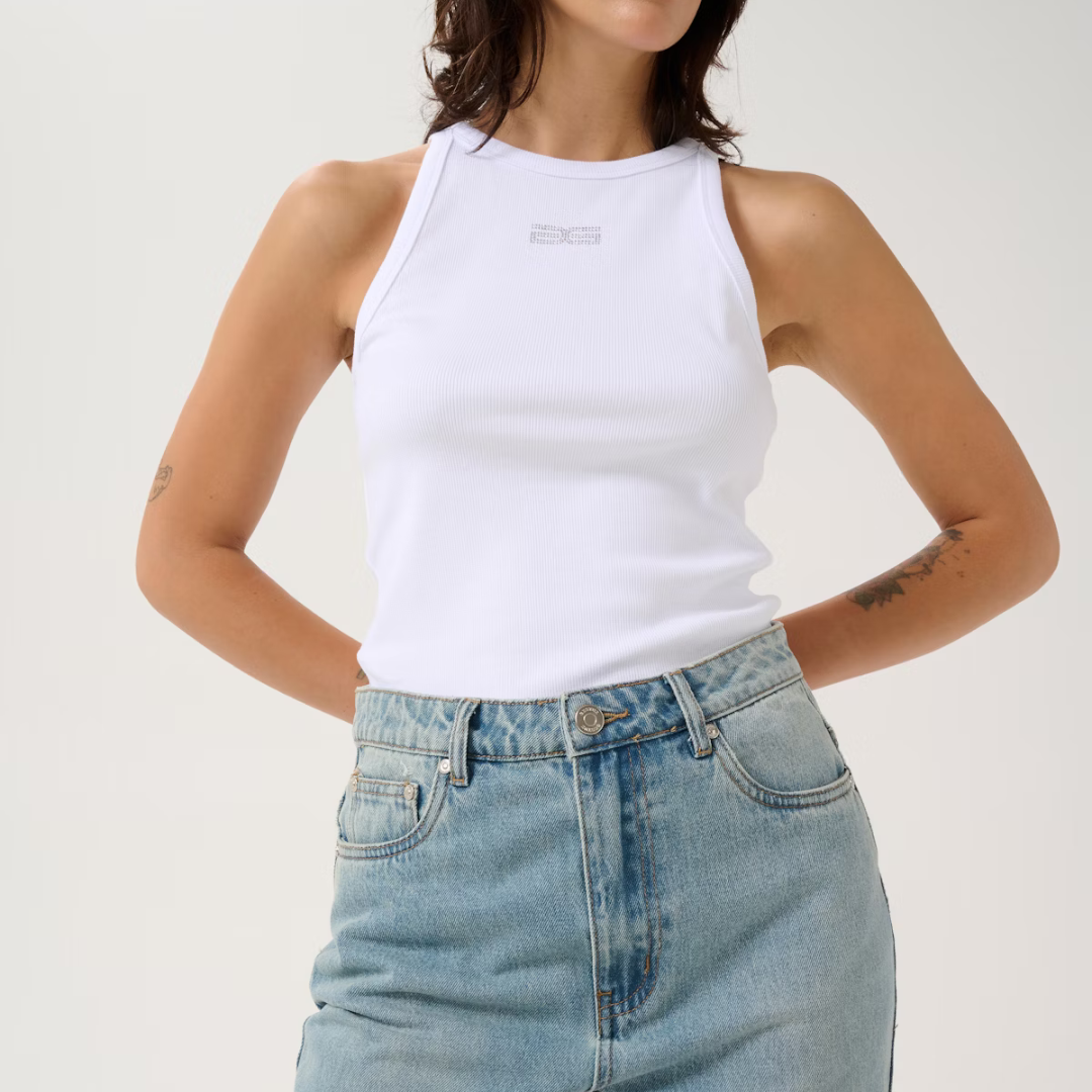 Drew Rhinestone Logo Tank Top Bright White fra Gestuz