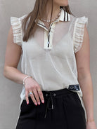 Net Frill Polo Top Off White fra Haute L'Amitié