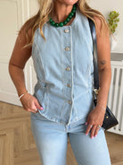 Ivy Copenhagen Alba Halterneck Top Wash Le Havre Denim Blue