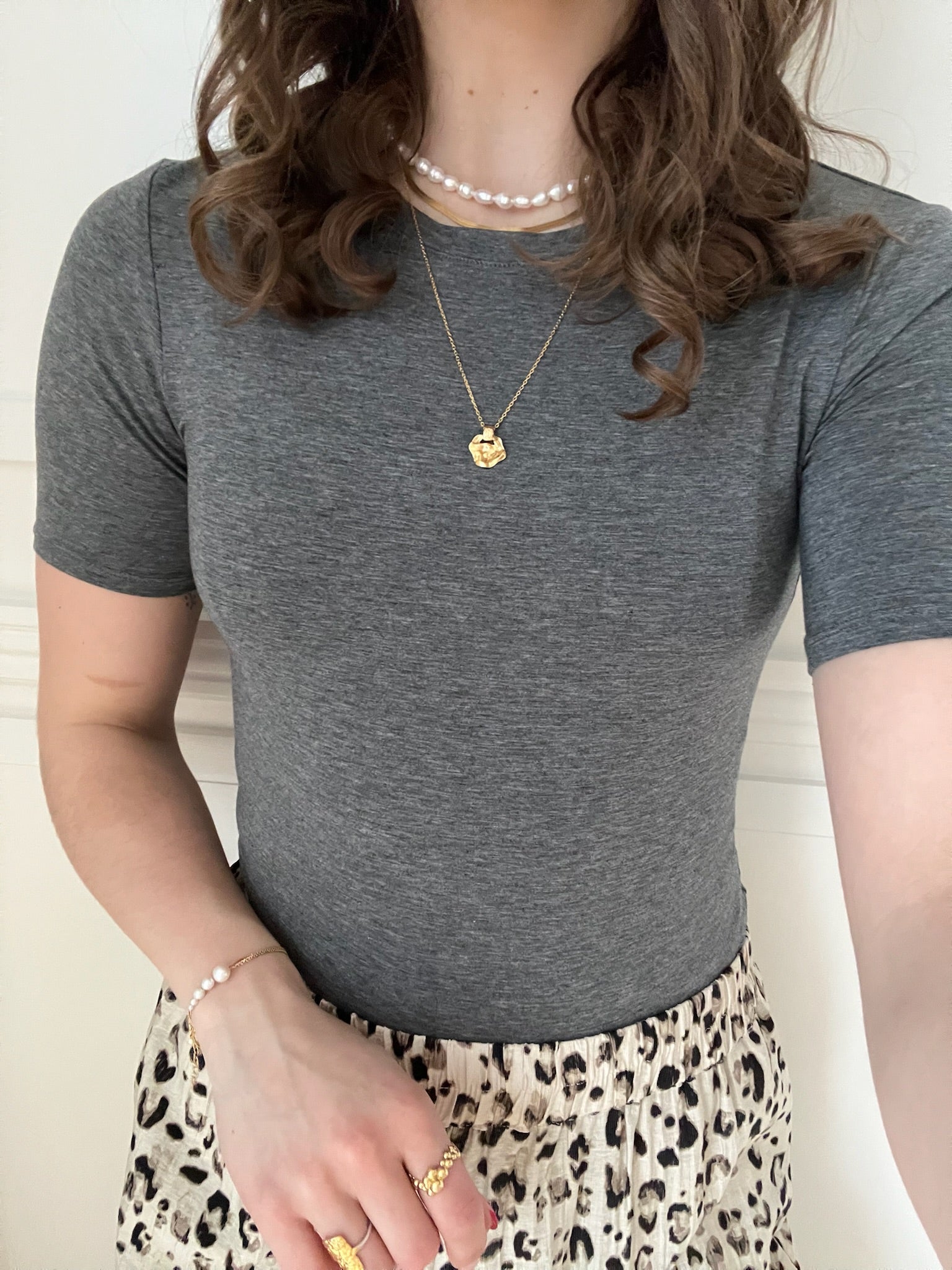 Betrina SS T-shirt Medium Grey Melange fra MSCH Copenhagen