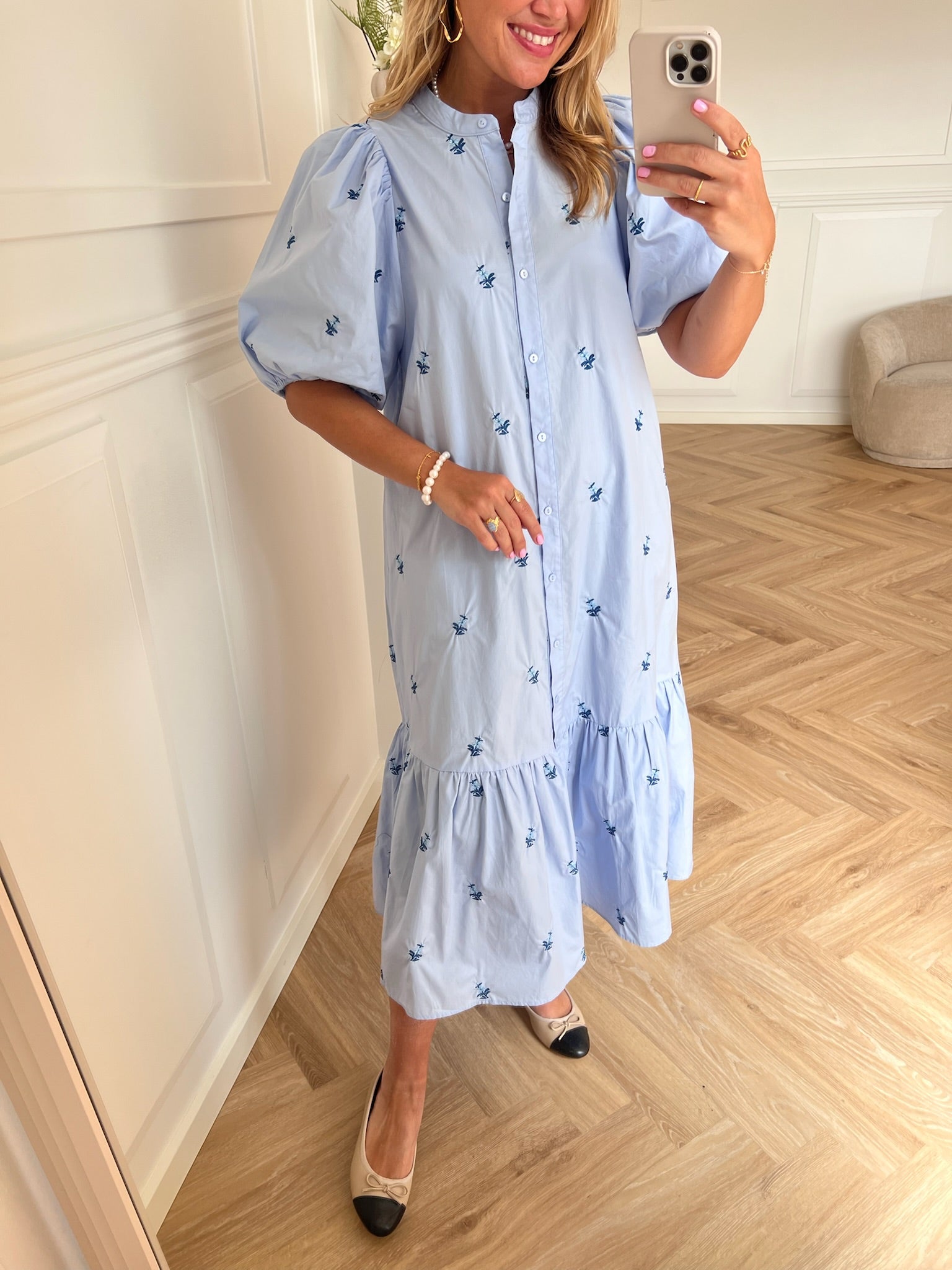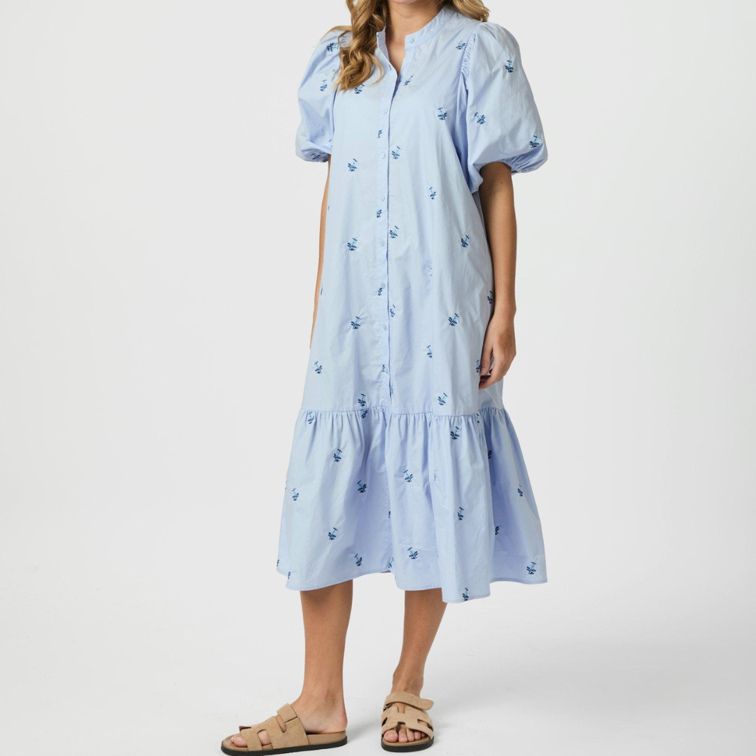 Veronica Embroidery Kjole Light Blue fra Neo Noir