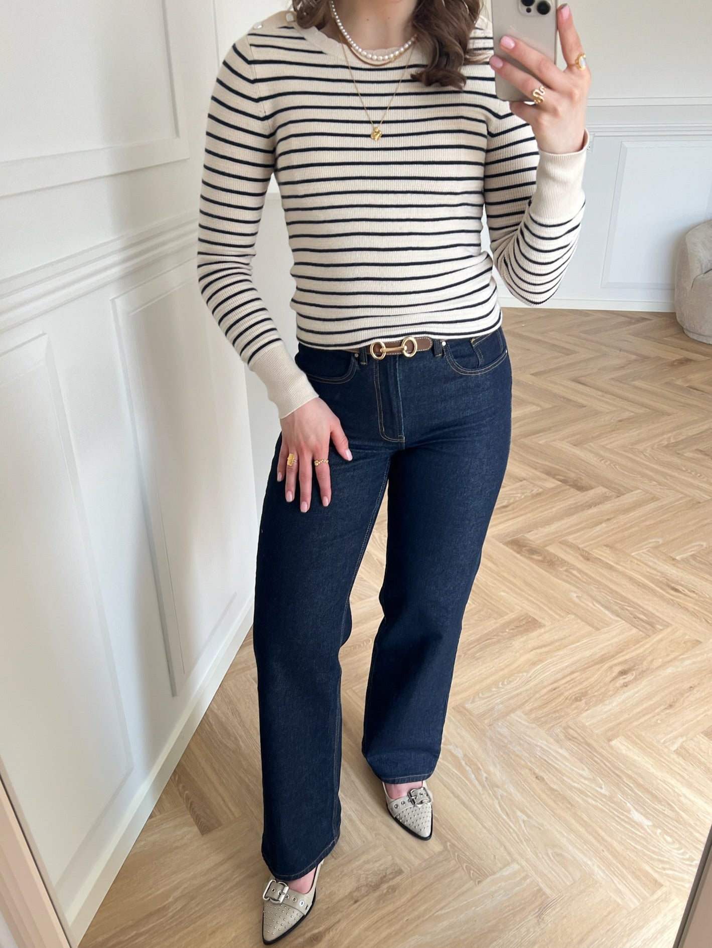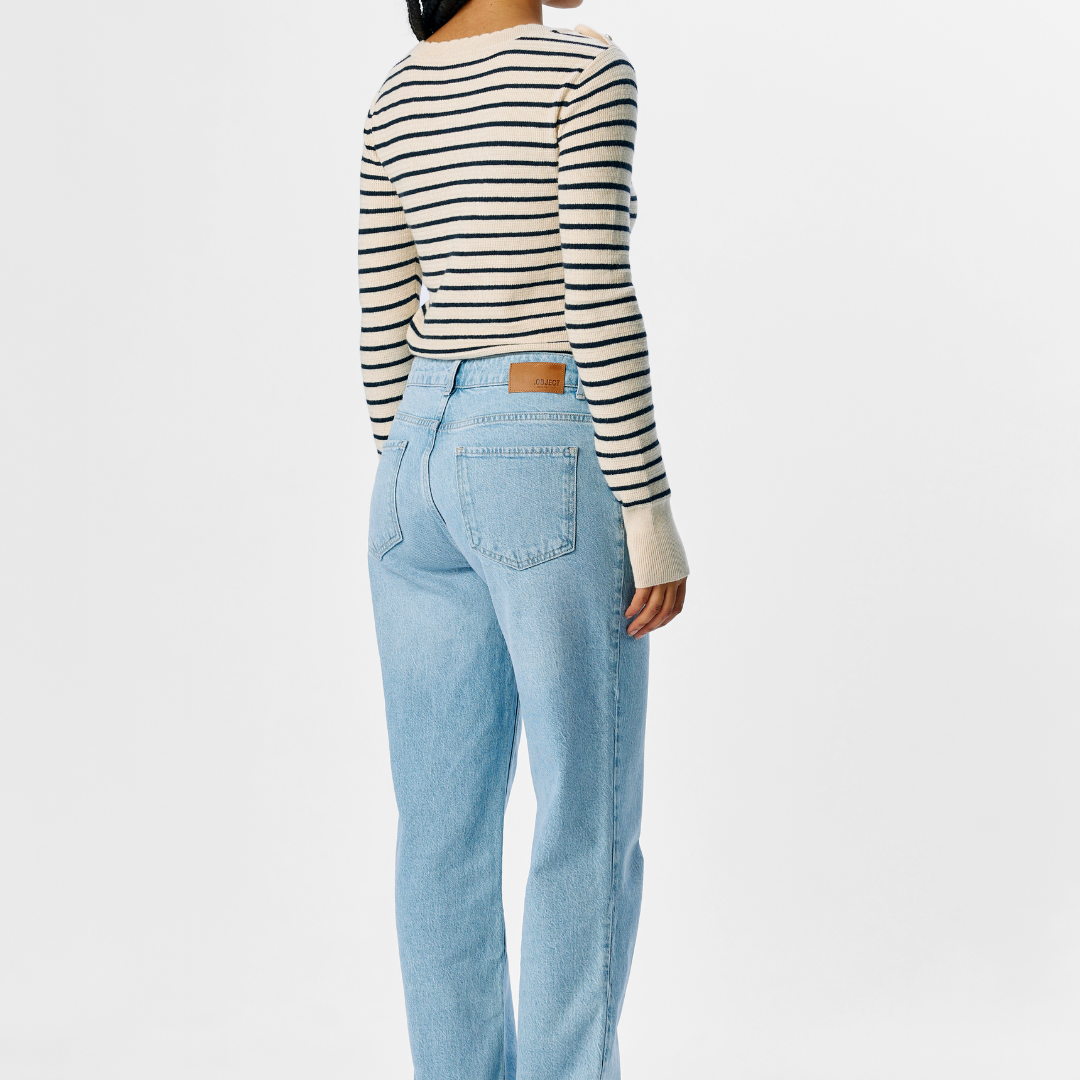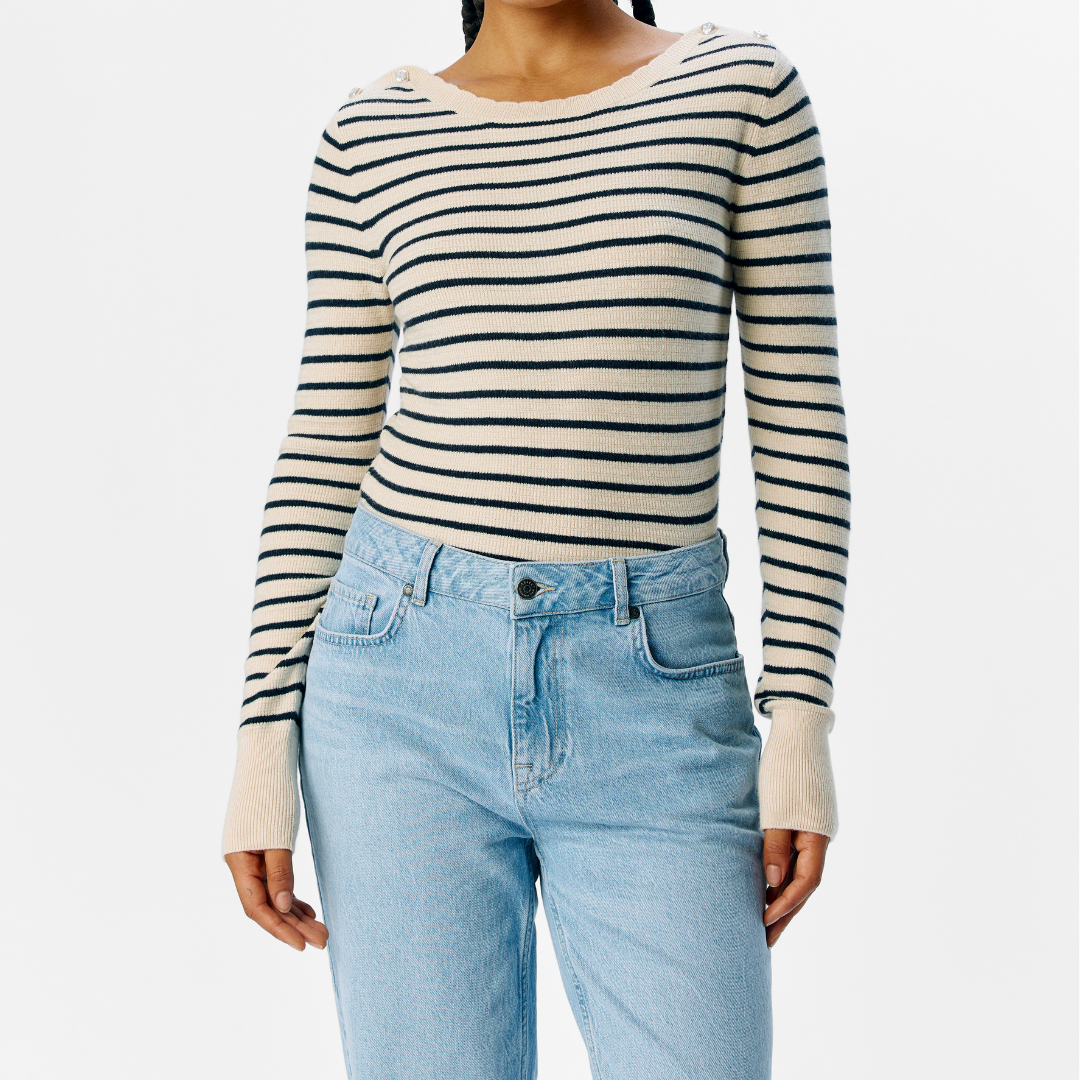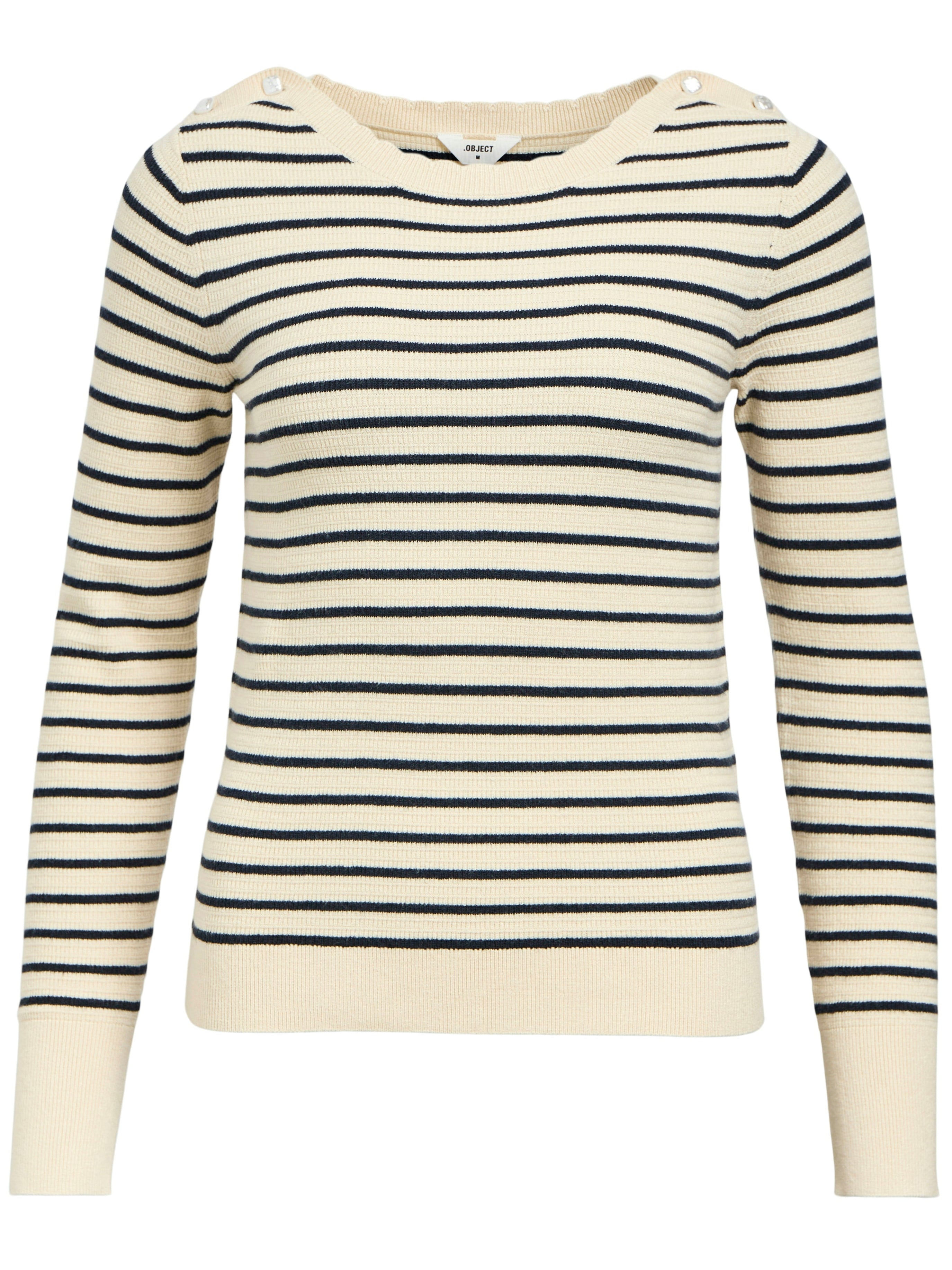 Polina LS Strik Sandshell Stripes/Sky Captain fra Object