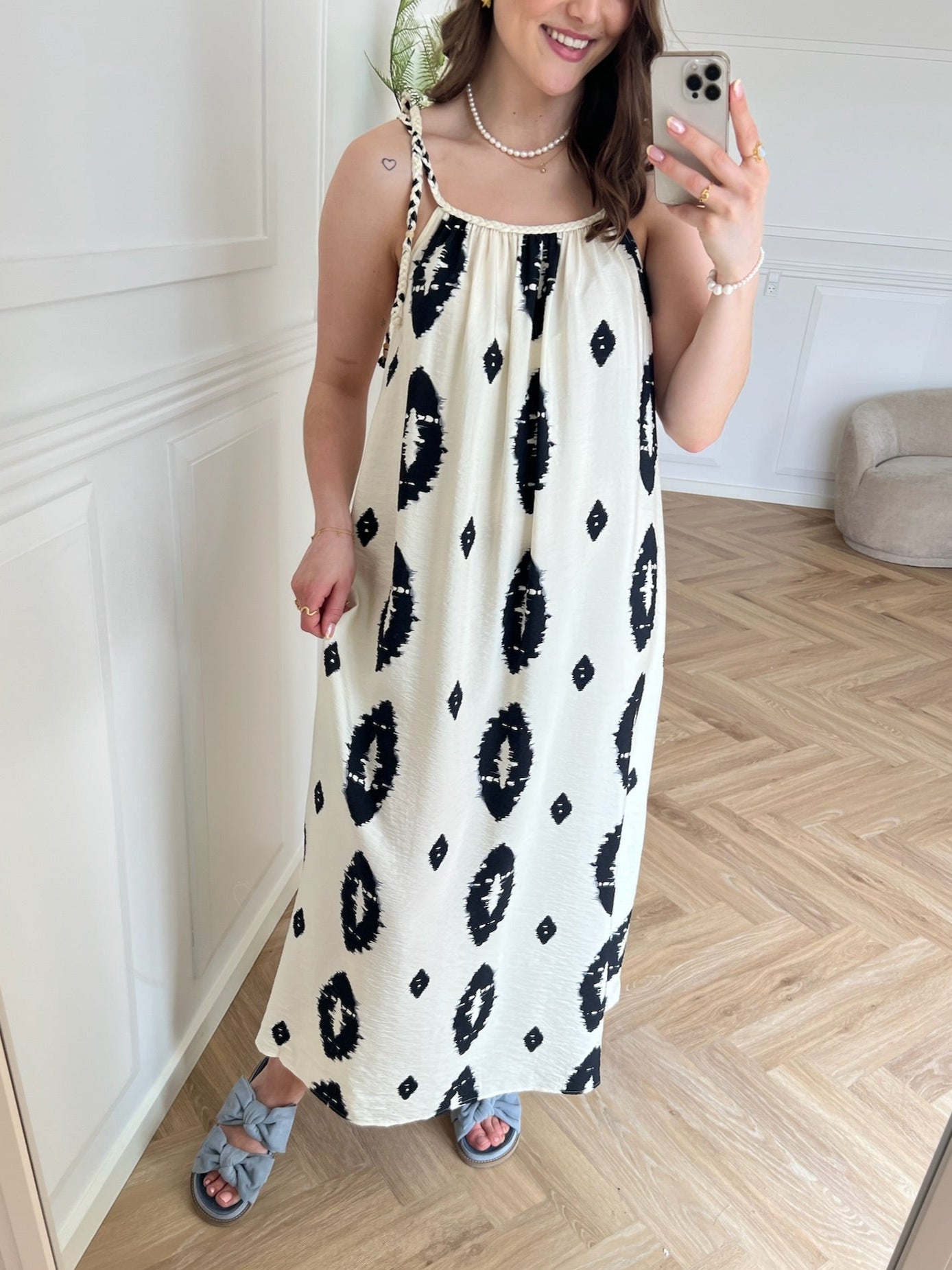 Only Elanor SL Braid Ankel Kjole Cloud Dancer/Black