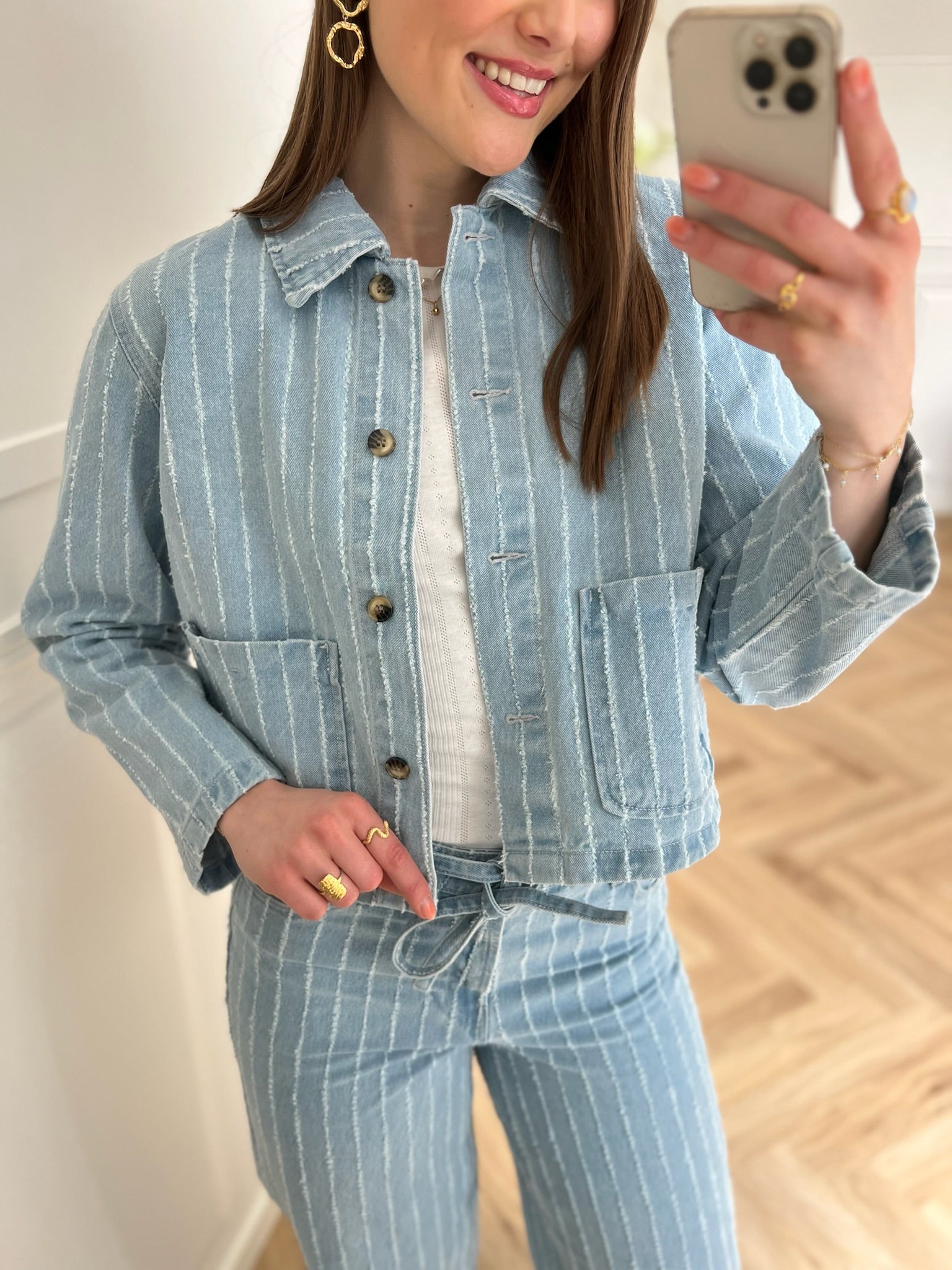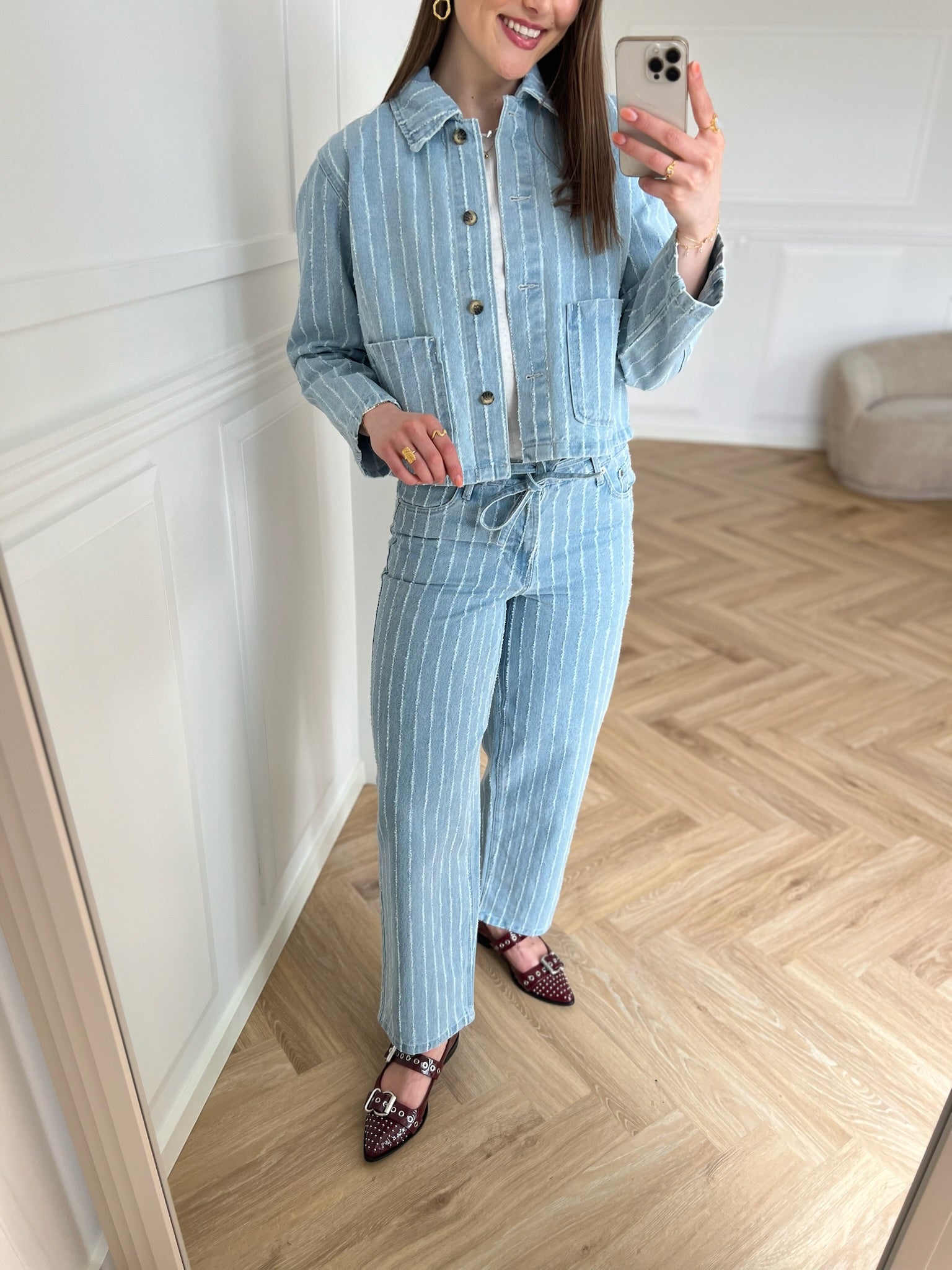 - Light Blue Denim (Blå denim med hvid nålestrib)