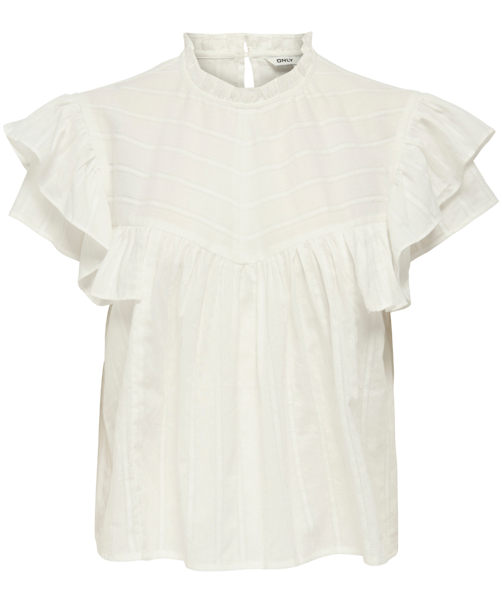 Only Heike SL Frill O-Neck Top Cloud Dancer