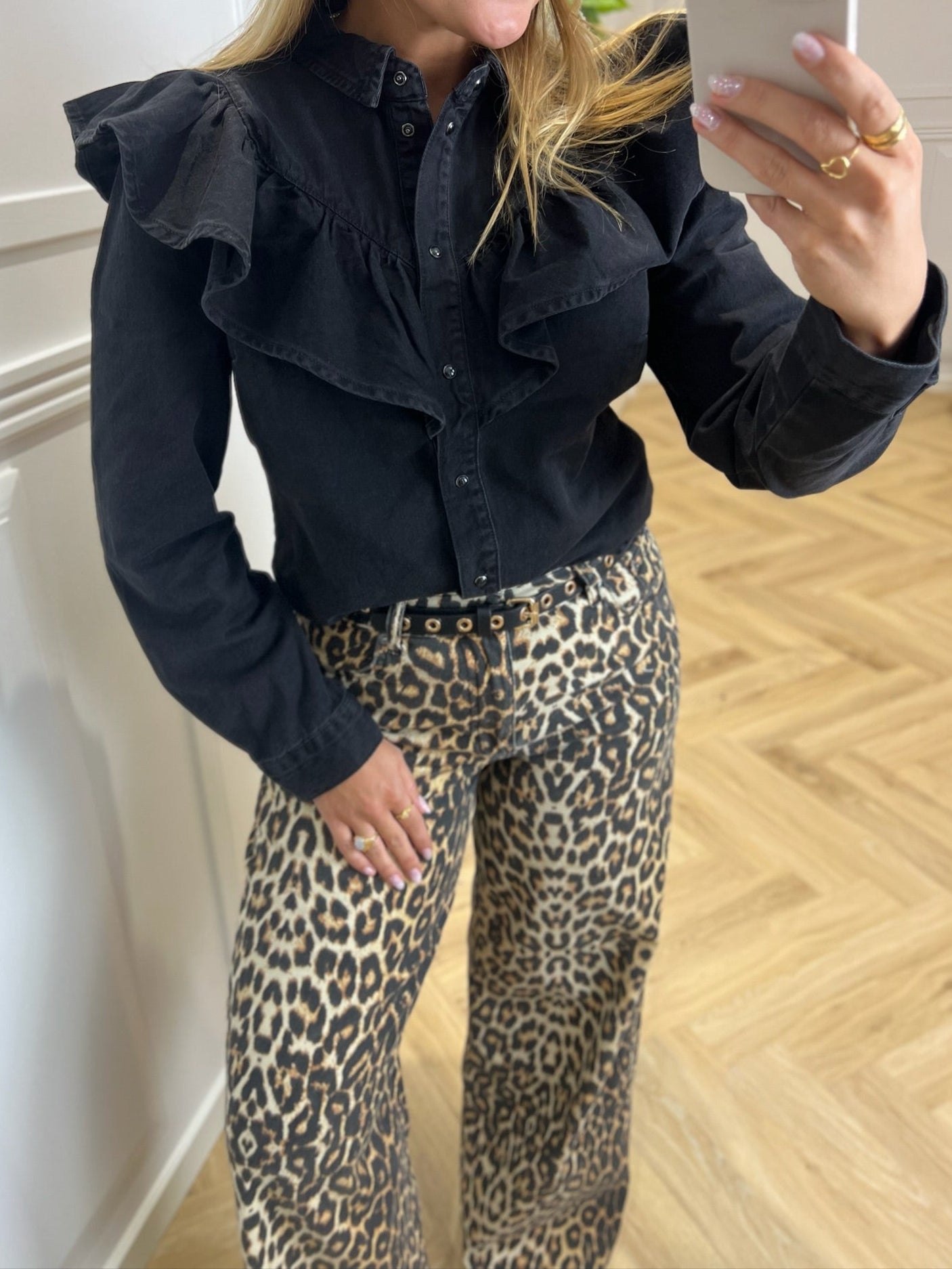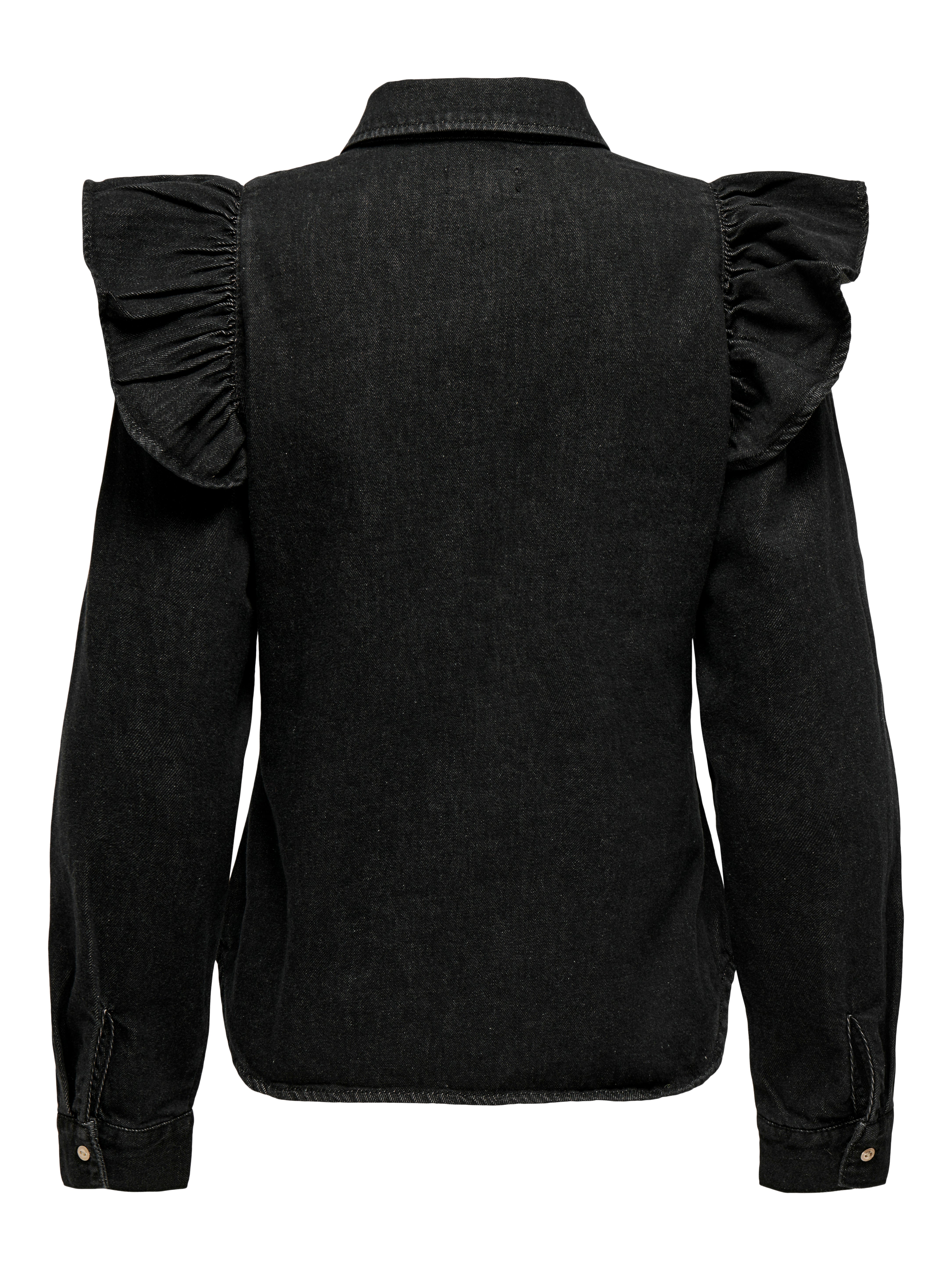 Only Indigo LS Frill Denim Skjorte Washed Black