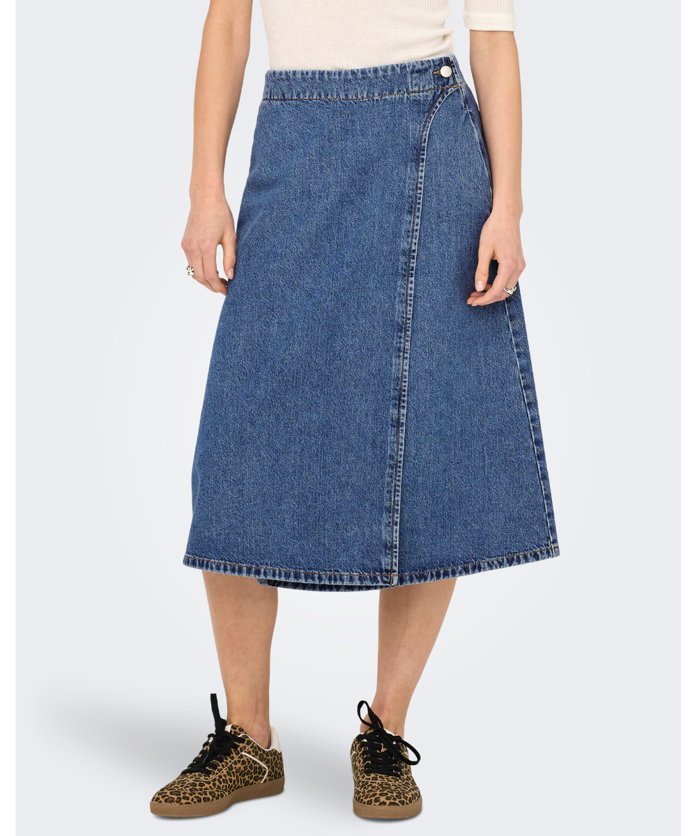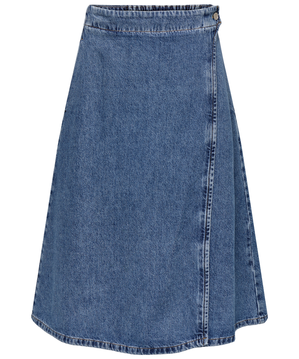 Thea Wrap Midi Nederdel Medium Blue Denim fra Only