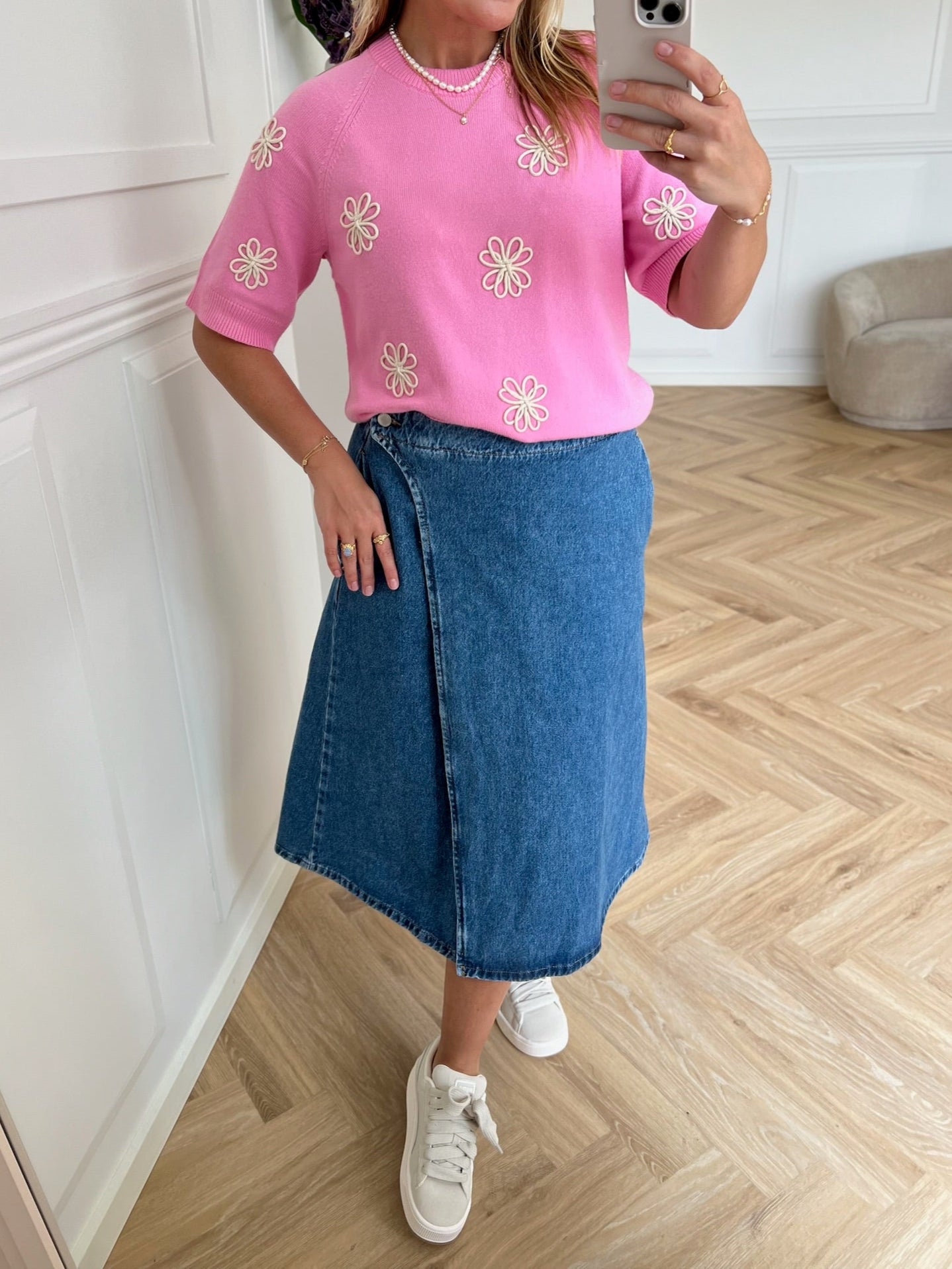 Vores model er iført str. 38 og hun er 165 cm høj