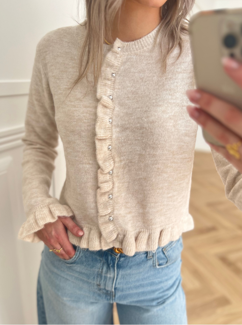 Lydia LS Frill Knit Cardigan Birch Melange fra Pieces