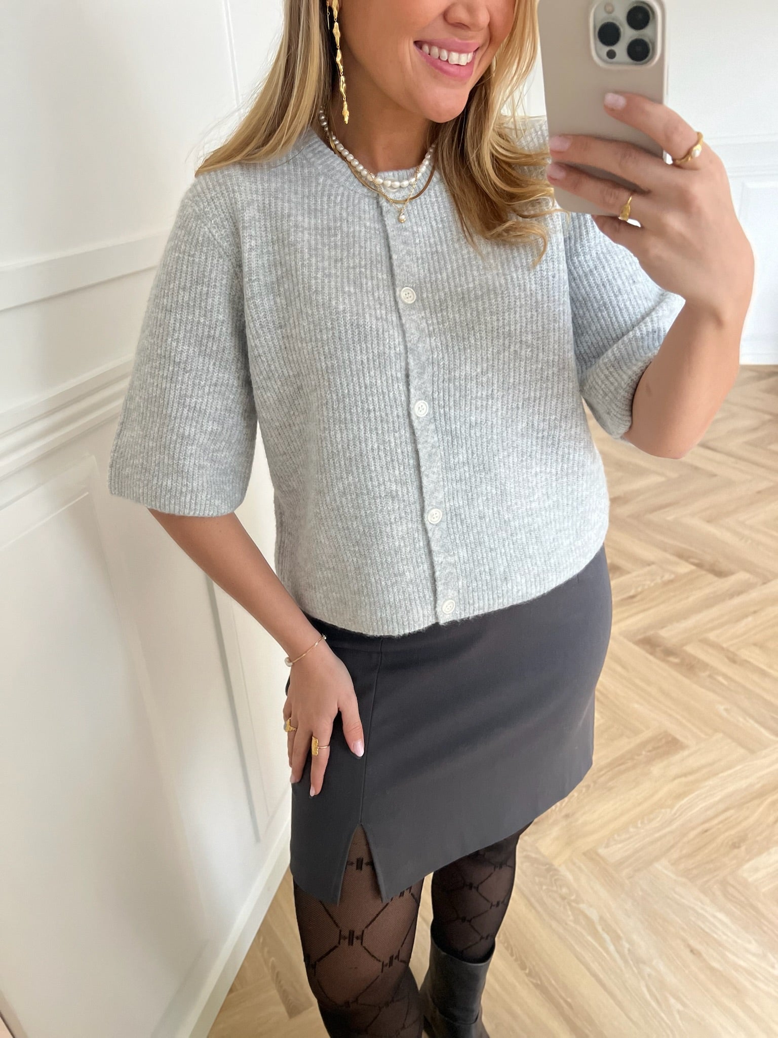 Pieces Silly SS O-Neck Strikcardigan Light Grey Melange NOS25