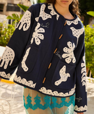 - Navy Blazer (Mørkeblå med hvide detaljer)
