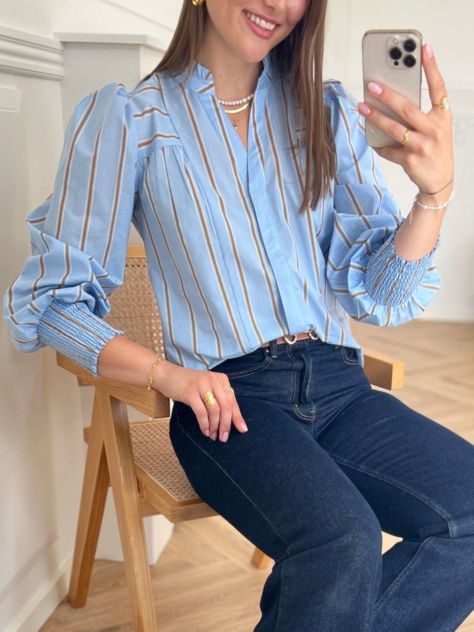 Co'Couture Amora Stripe V Skjorte Pale Blue