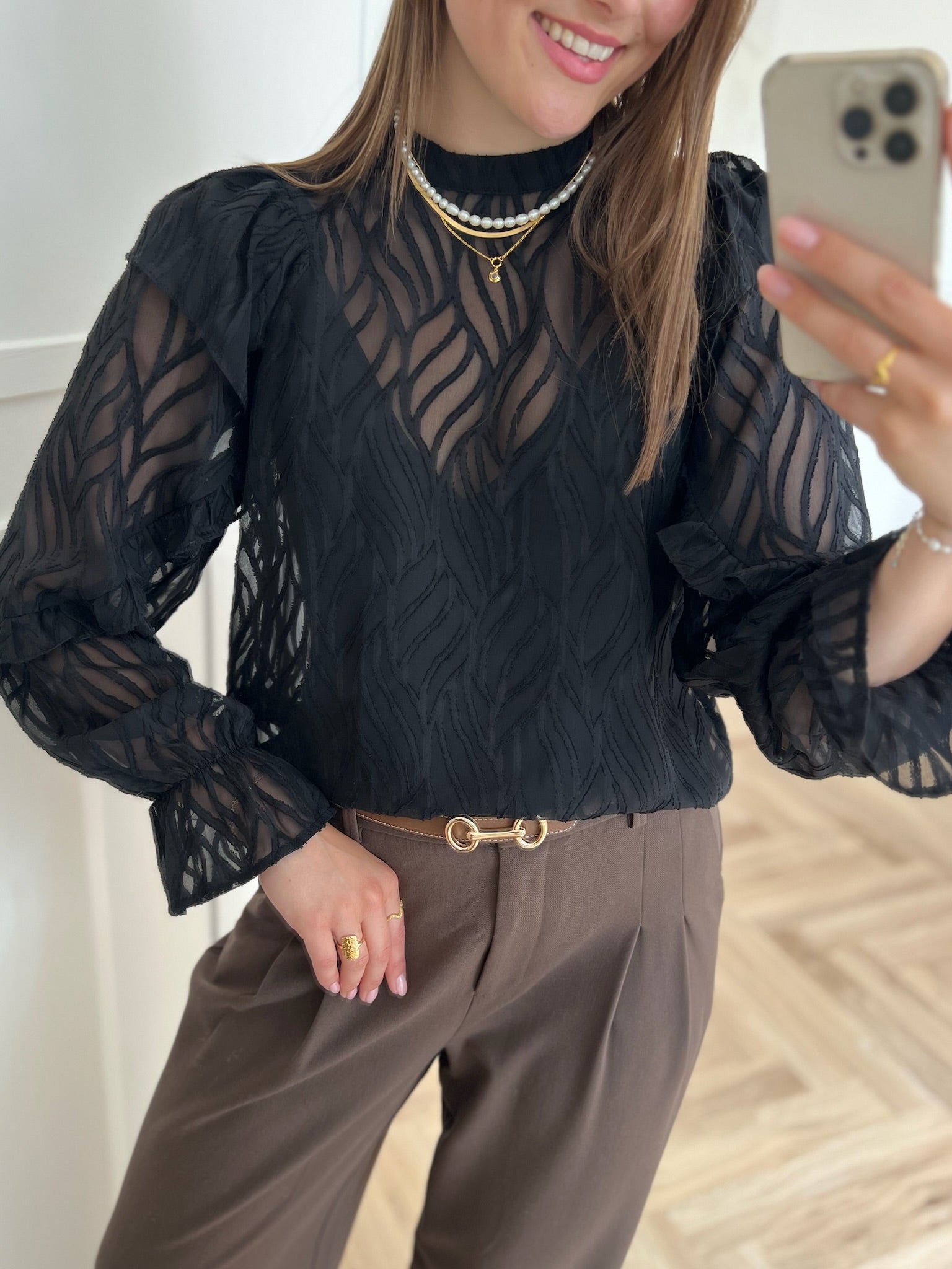 Co'Couture Granny Embroidery LS T-shirt Dark Brown