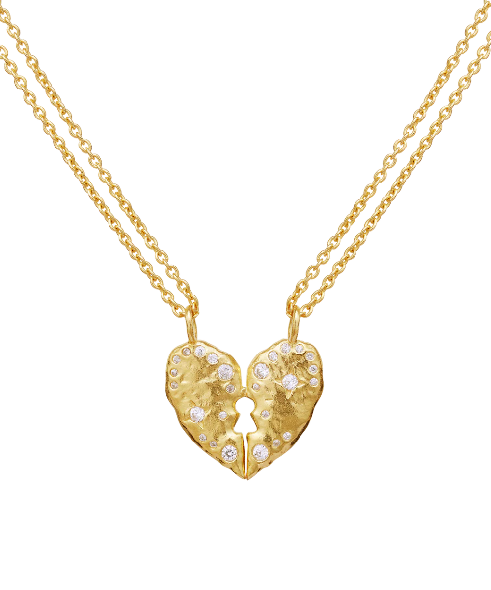 - Med sin dobbelte kæde og to halve hjerter kan du enten beholde hele herligheden selv, eller dele den med din eneste ene.
