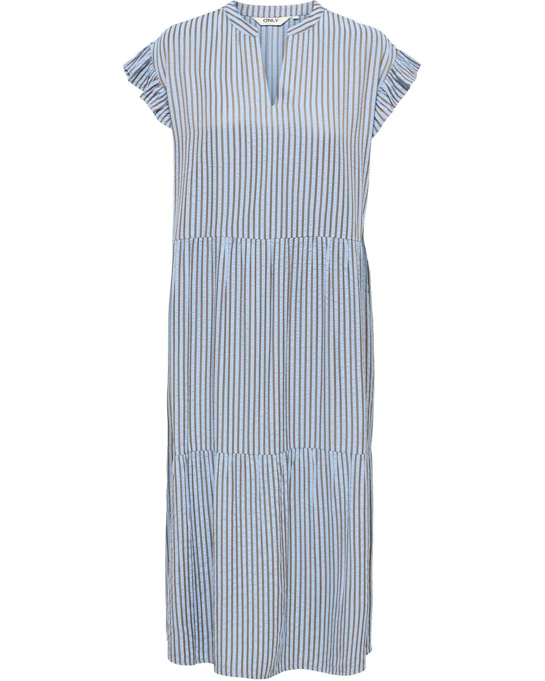 Only Bari SL Frill V-Neck Midi Kjole Soft Chambray/Morel