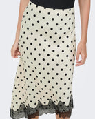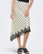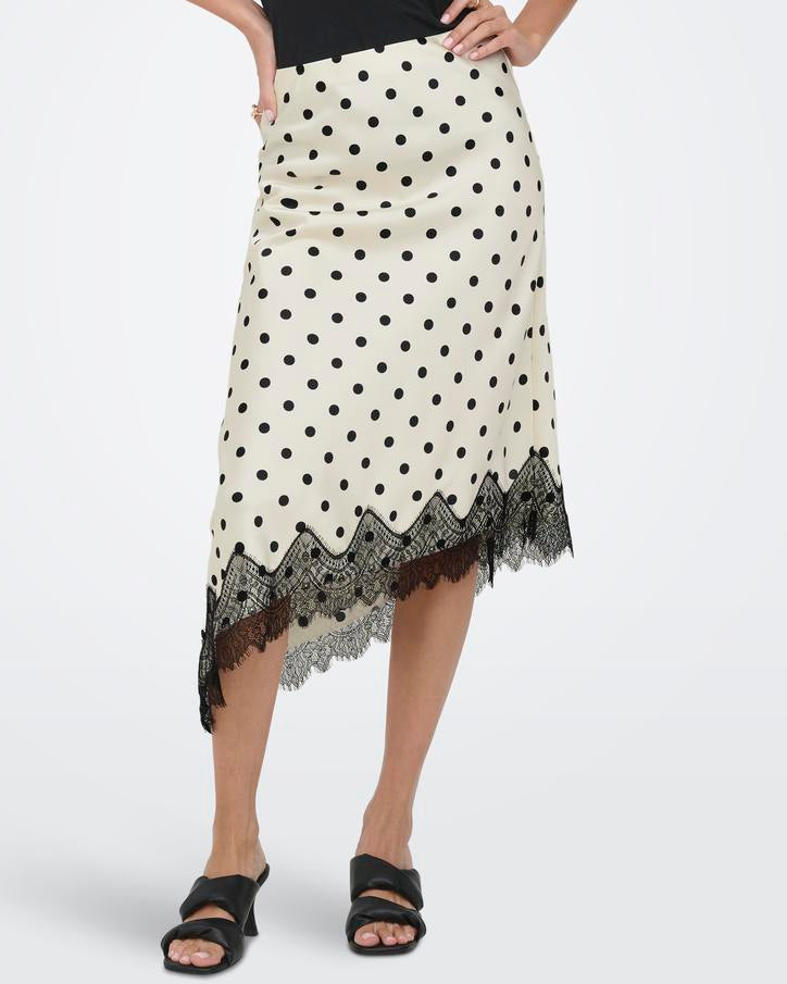 Only Bella Slanted Satin Lace Nederdel Cloud Dancer/Black Dot