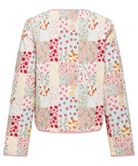 Elvira AOP Jackke har korte ærmer og rund hals med knaplukning foran. Jakken er let polstret og har et flot all-over print med patchy blomster. Den passer til foråret og giver et casual look med en blød fornemmelse.