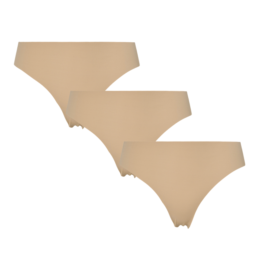 Blød og strækbar thong med en tætsiddende pasform uden syninger for ekstra komfort. Pakken indeholder tre styk, der passer perfekt til daglig brug.